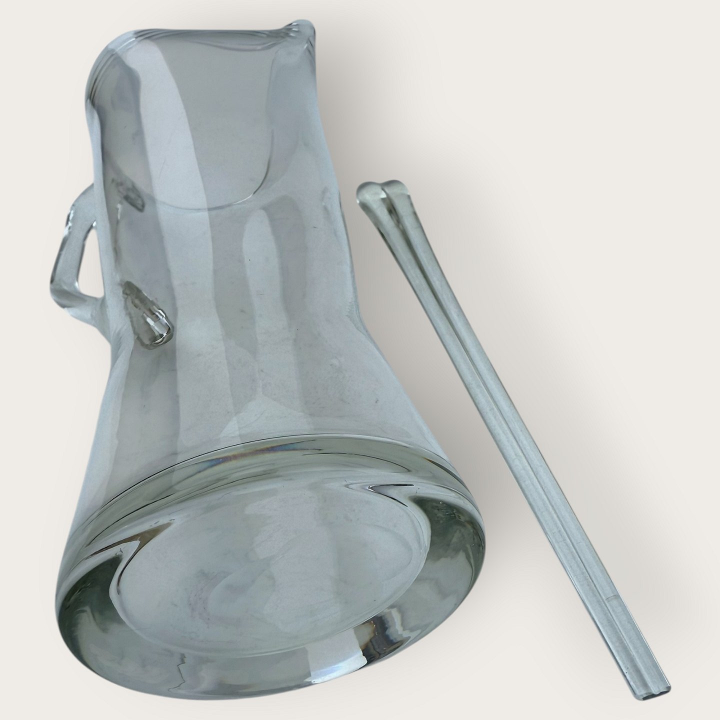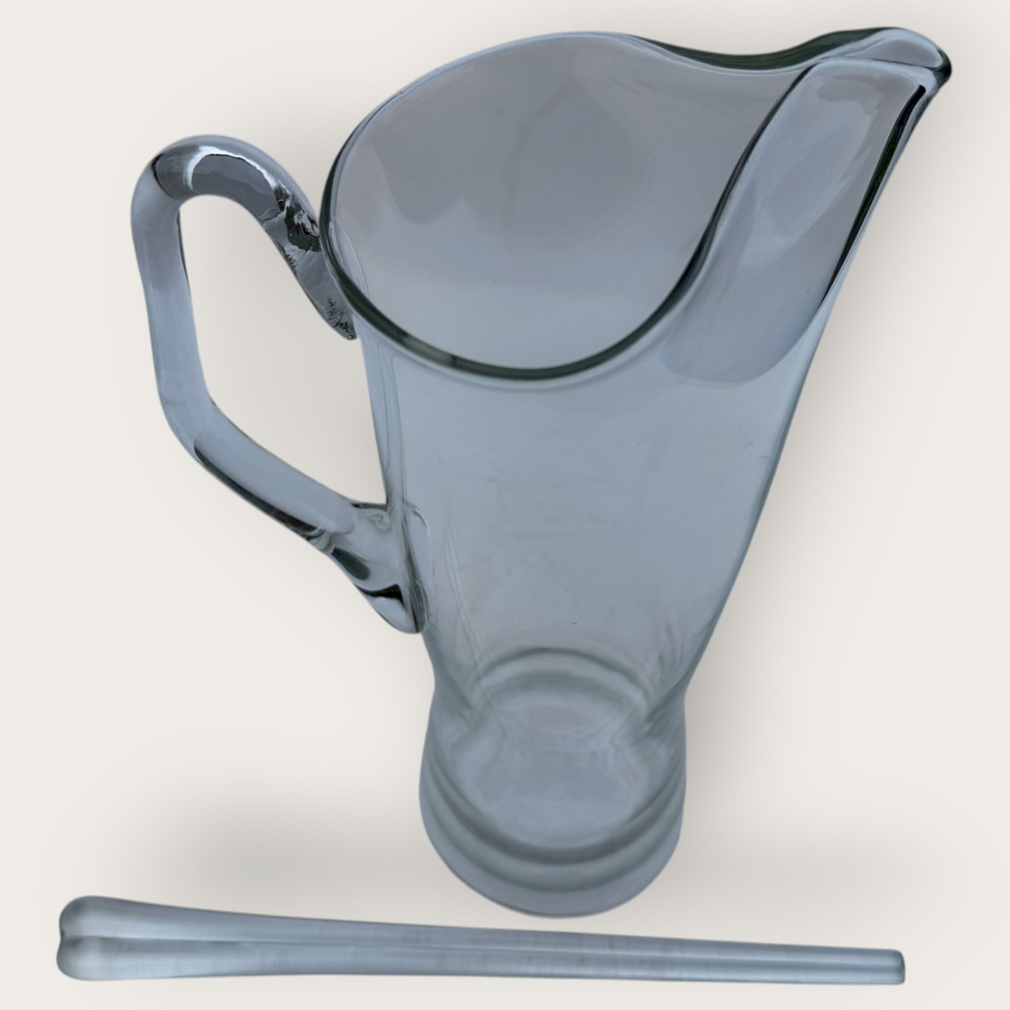 Glaskrug mit Rührstab, Cocktailkrug, Höhe 28 cm, Breite am Griff 16 cm * guter Zustand *Lager: 1