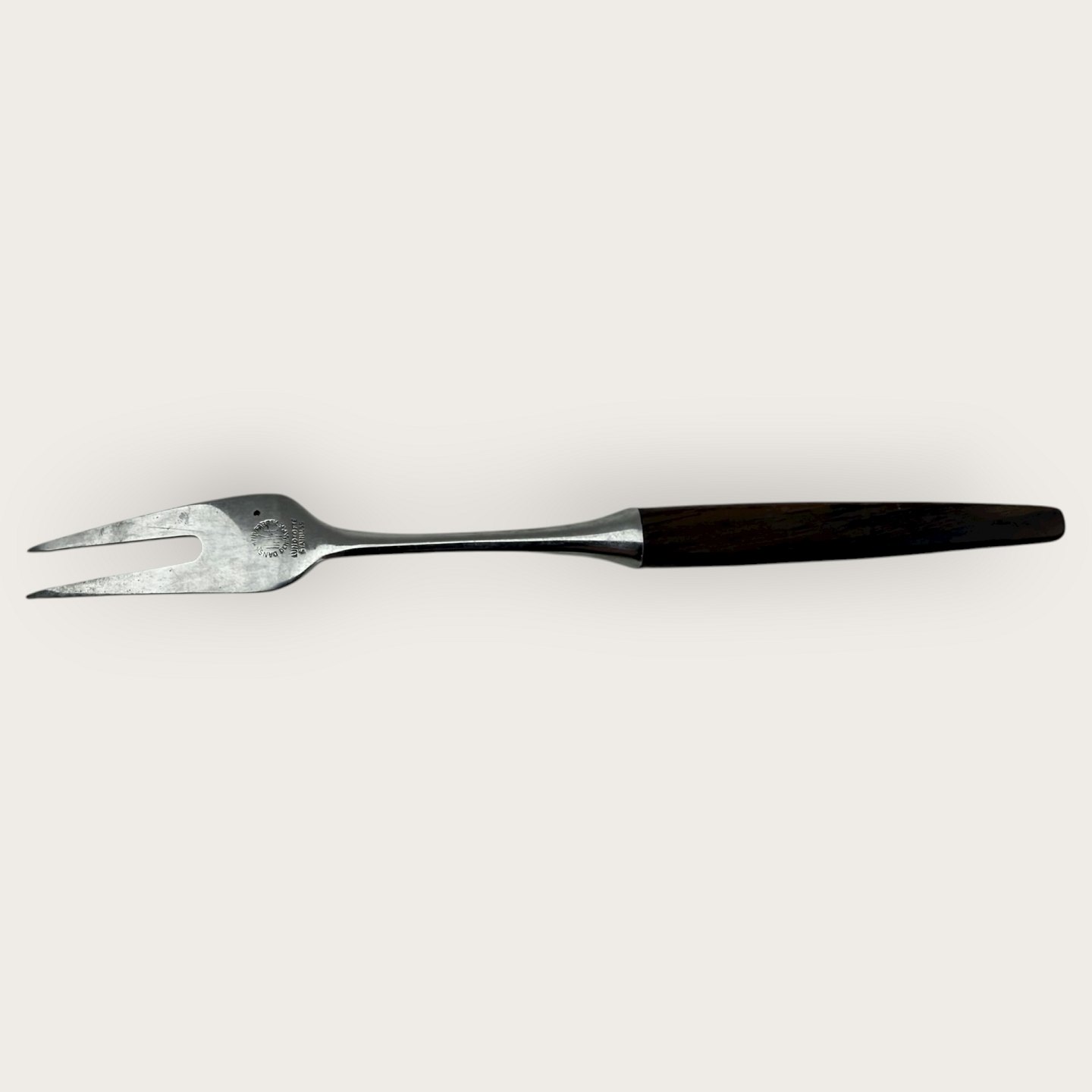 Lundtofte, Aufschnittgabel aus Teakholz und Edelstahl aus den 1960er Jahren, 14,5 cm lang * guter gebrauchter Zustand *Lager: 2