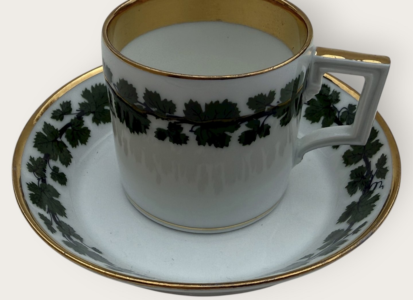 Kleine Kaffeetasse mit Weinlaub und Goldverzierungen
