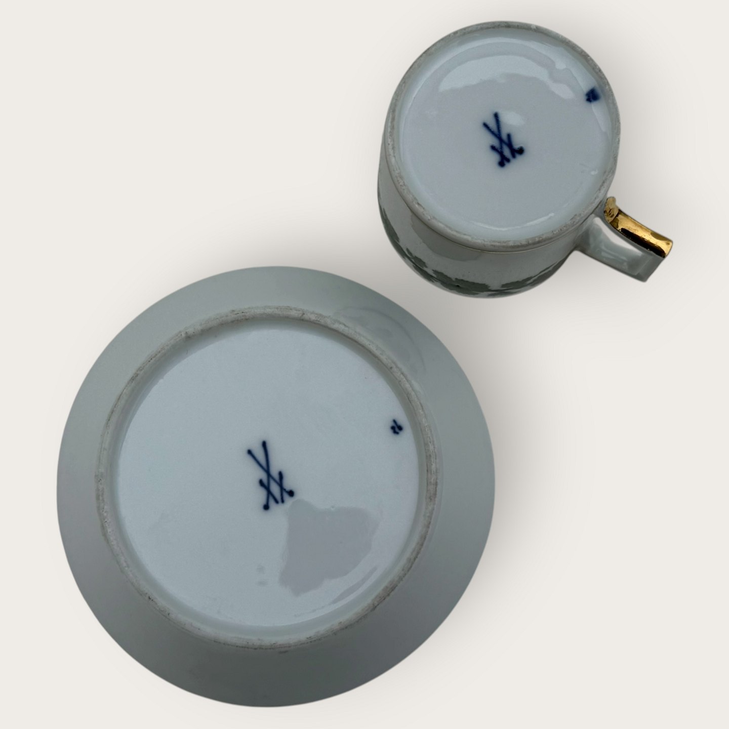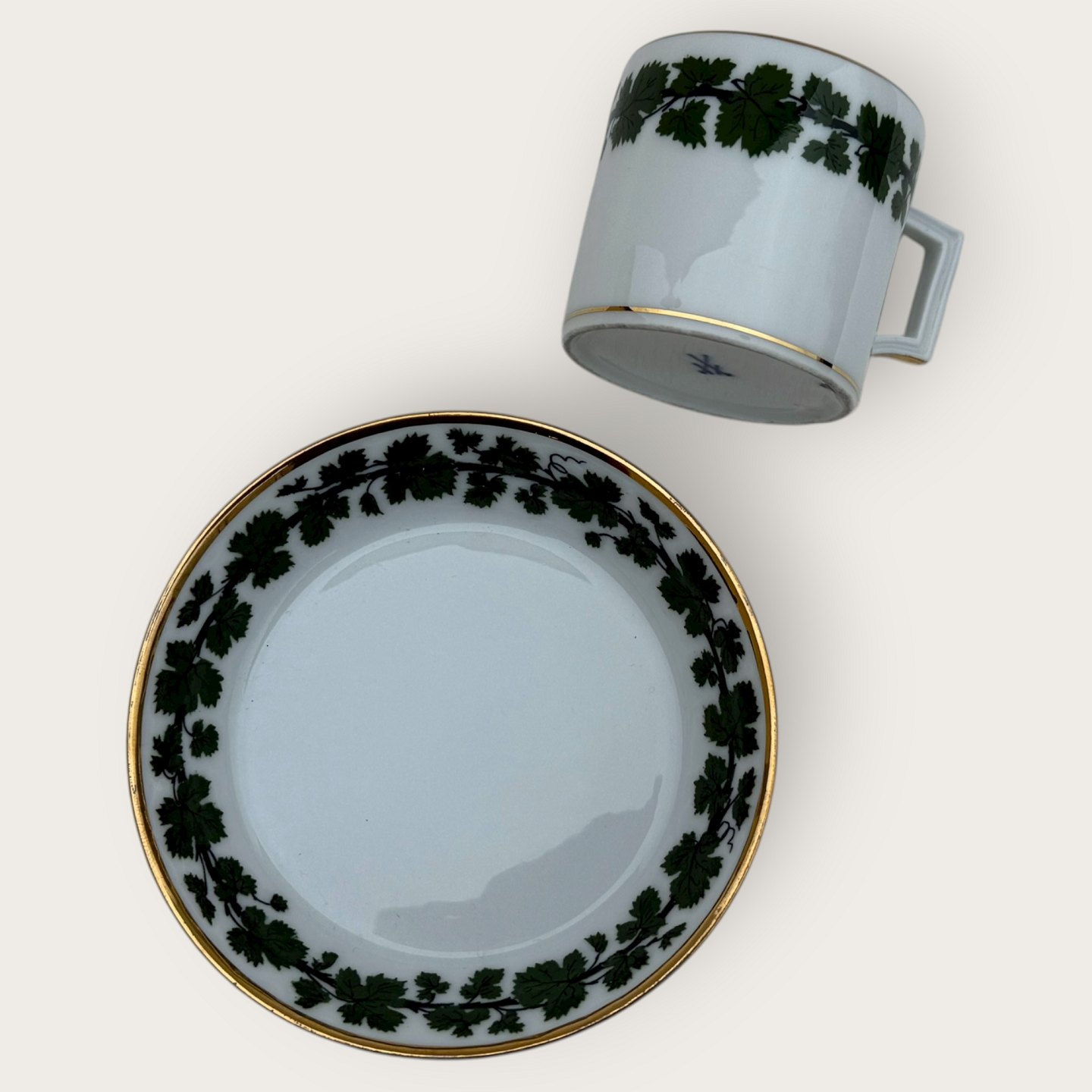 Meissen, kleine Kaffeetasse mit Weinlaub und Goldrand, Höhe 5 cm, Durchmesser 5 cm *sehr guter Zustand*Lager: 1