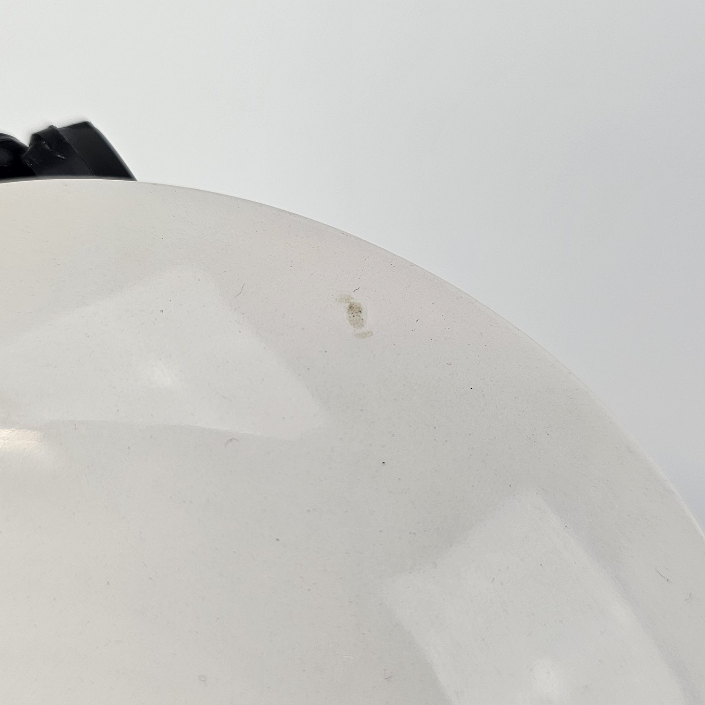 Fremstår med krakeleringer i glasuren og nister på underkoppen