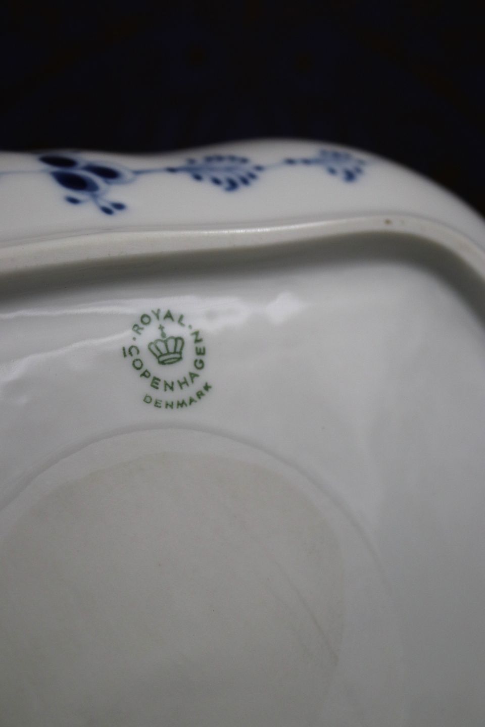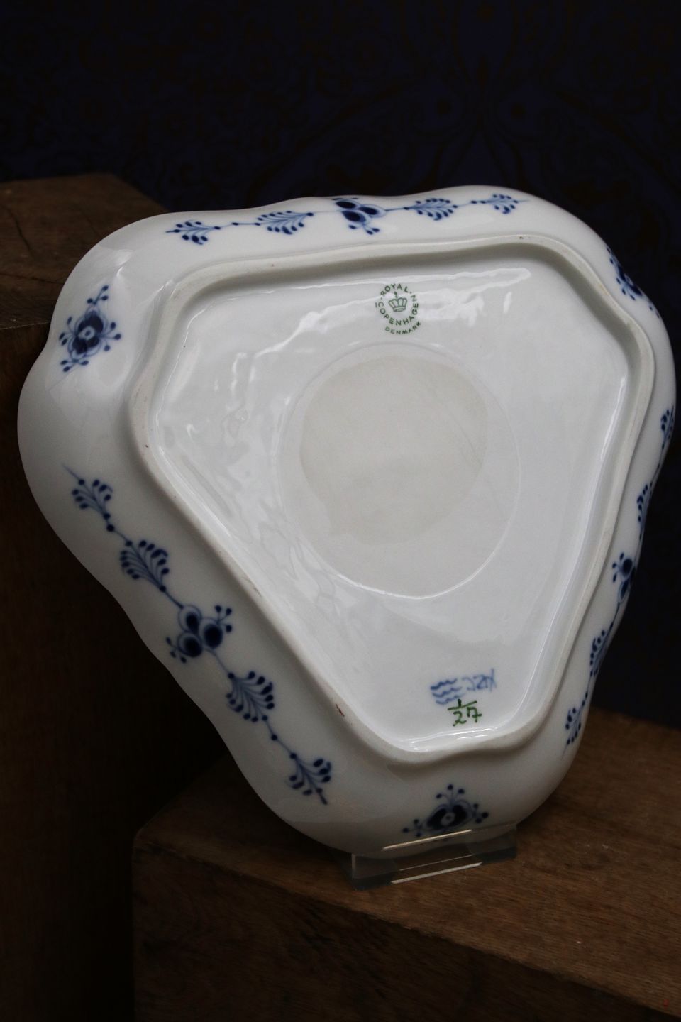 3 kantet kagefad / salatfad i Musselmalet Riflet fra Royal Copenhagen.1/27...