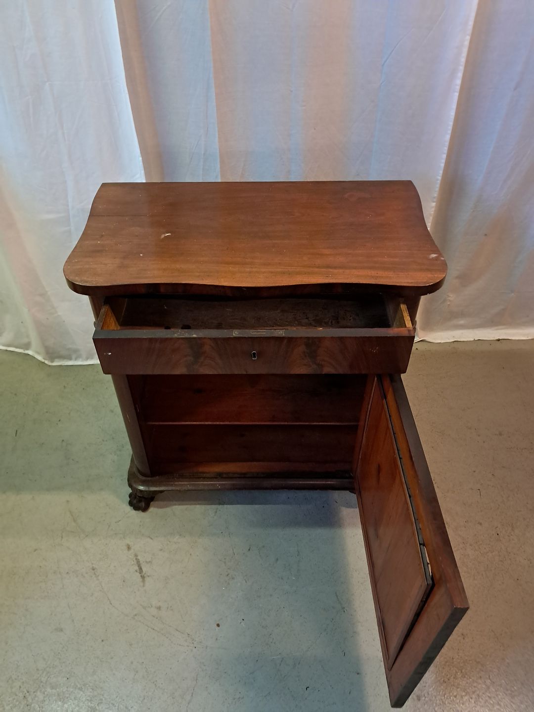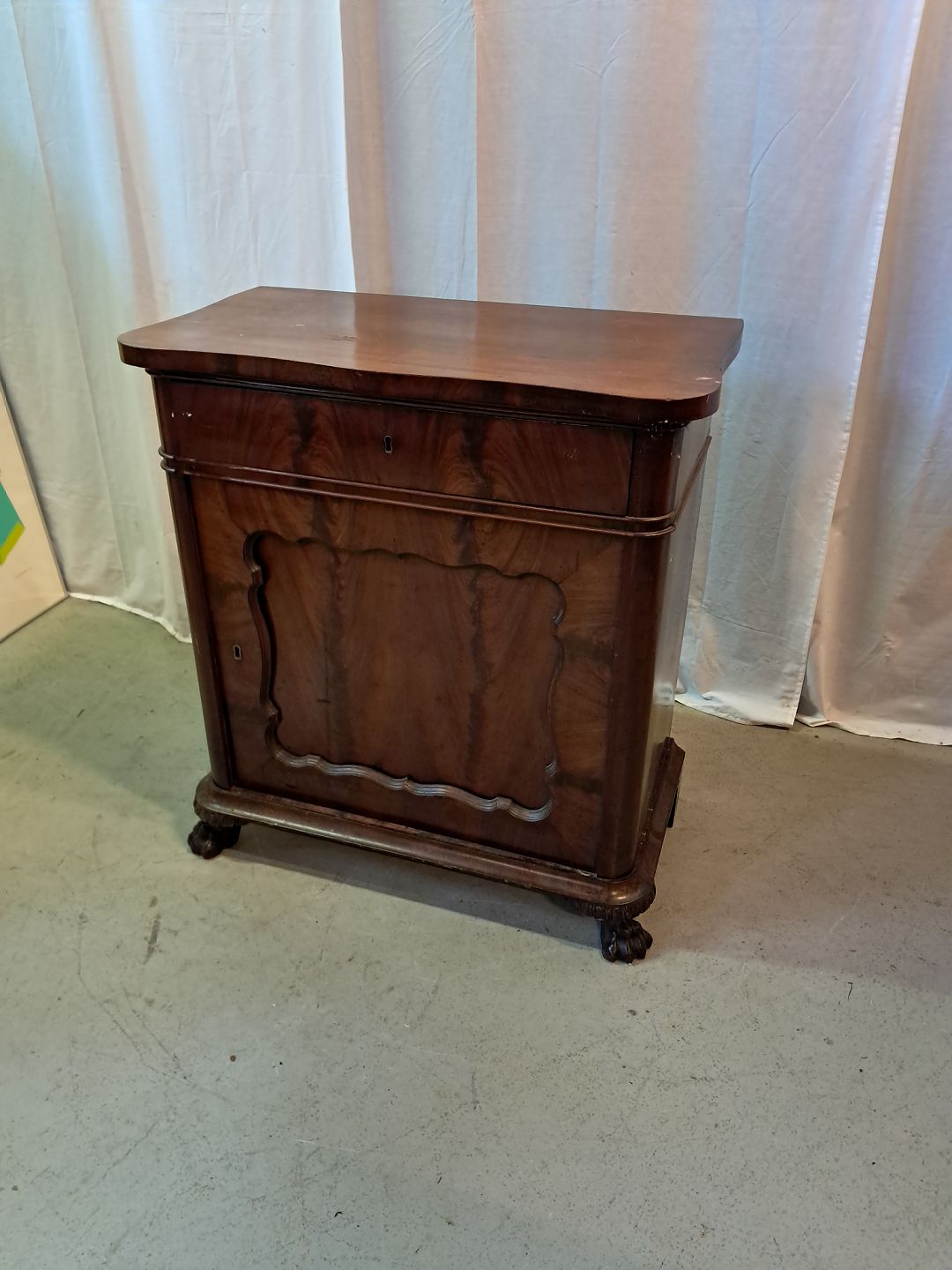 Skab i fineret mahogni, fra 1900erne.Det har brugsspor.