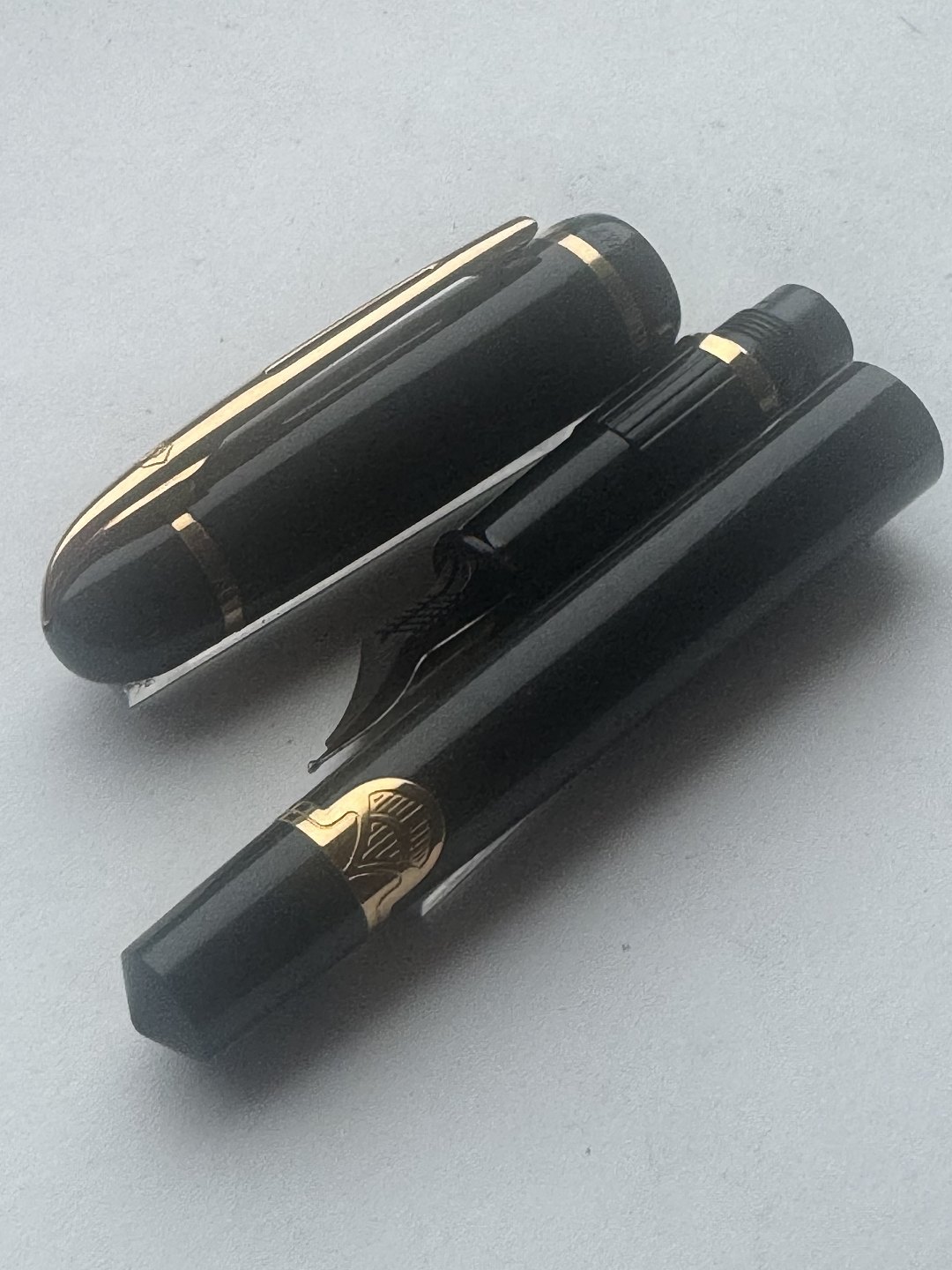 Moderne sort Waterman fyldepen. Lavet i Frankrig. Cartridge blæk-påfylder (blæk-patron). I god stand. Skriveklar når køber har tilkøbt Blæk-patroner. 13,5 cm lang