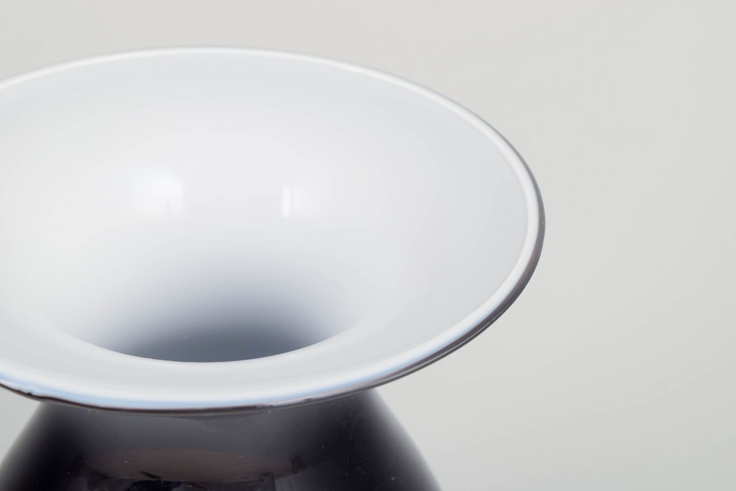 Elegant mundblæst vase i sort og hvidt glas fra serien Shape, designet af Peter Svarrer for Holmegaard. Klassisk form med blød kurvet silhuet og bred åbning. Original æske medfølger.