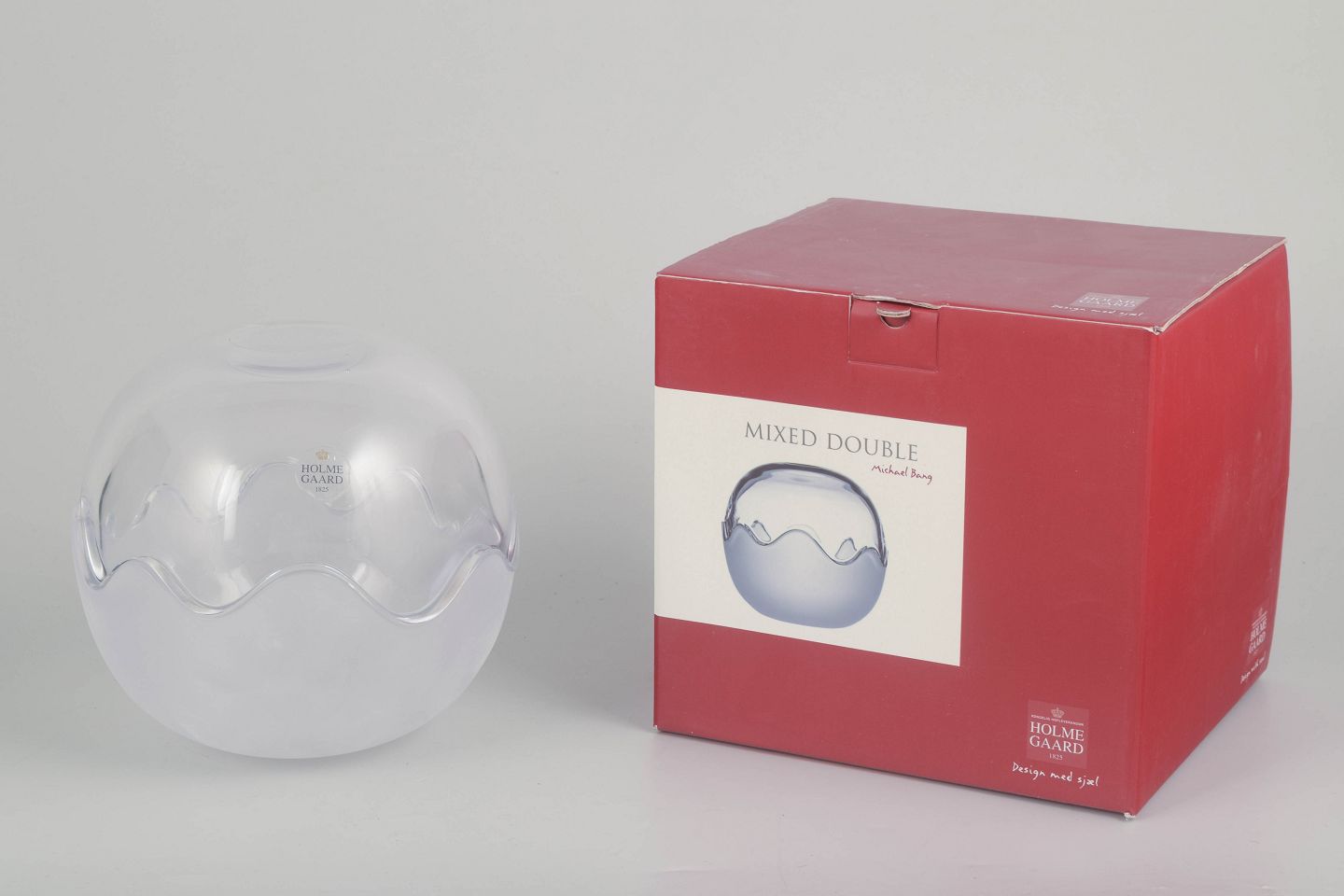 Michael Bang (1944–2013) var en dansk glaskunstner og designer, der i mange år var tilknyttet Holmegaard Glasværk. Han skabte både brugsglas og kunstneriske objekter med en særlig sans for form, lys og balance. Serien Mixed Double viser hans interesse for optiske effekter og skandinavisk enkelhed i moderne formsprog.