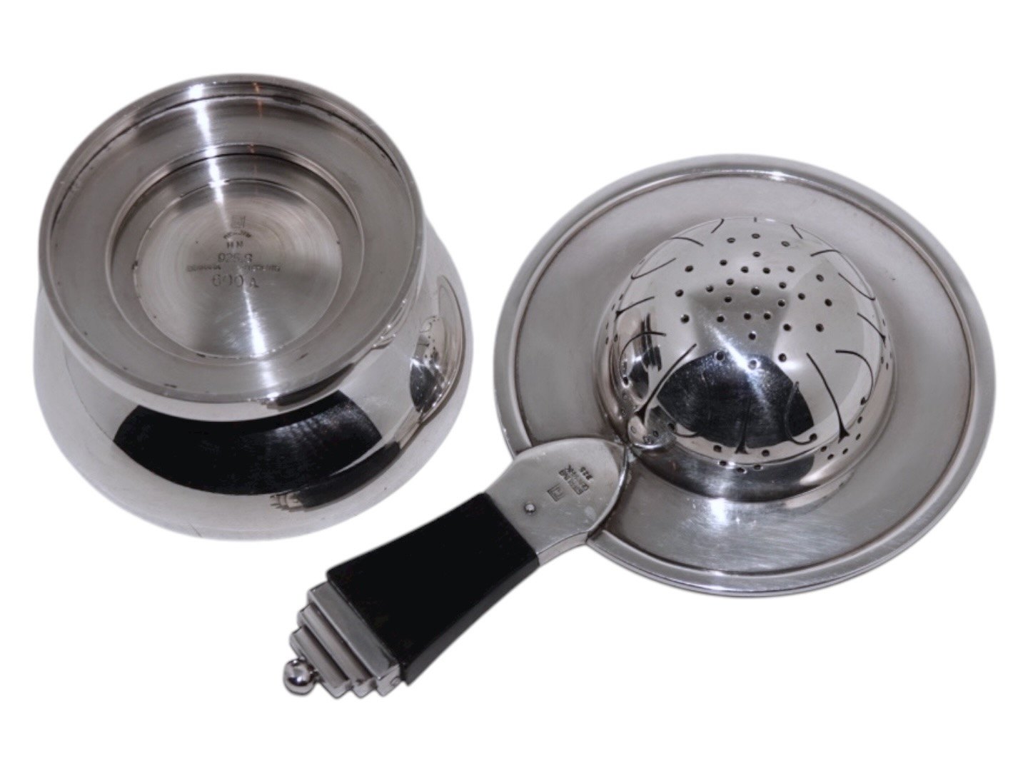 Georg Jensen sterling sølv og ibenholt, Pyramide tesi med holder.Designet af Harald Nielsen.