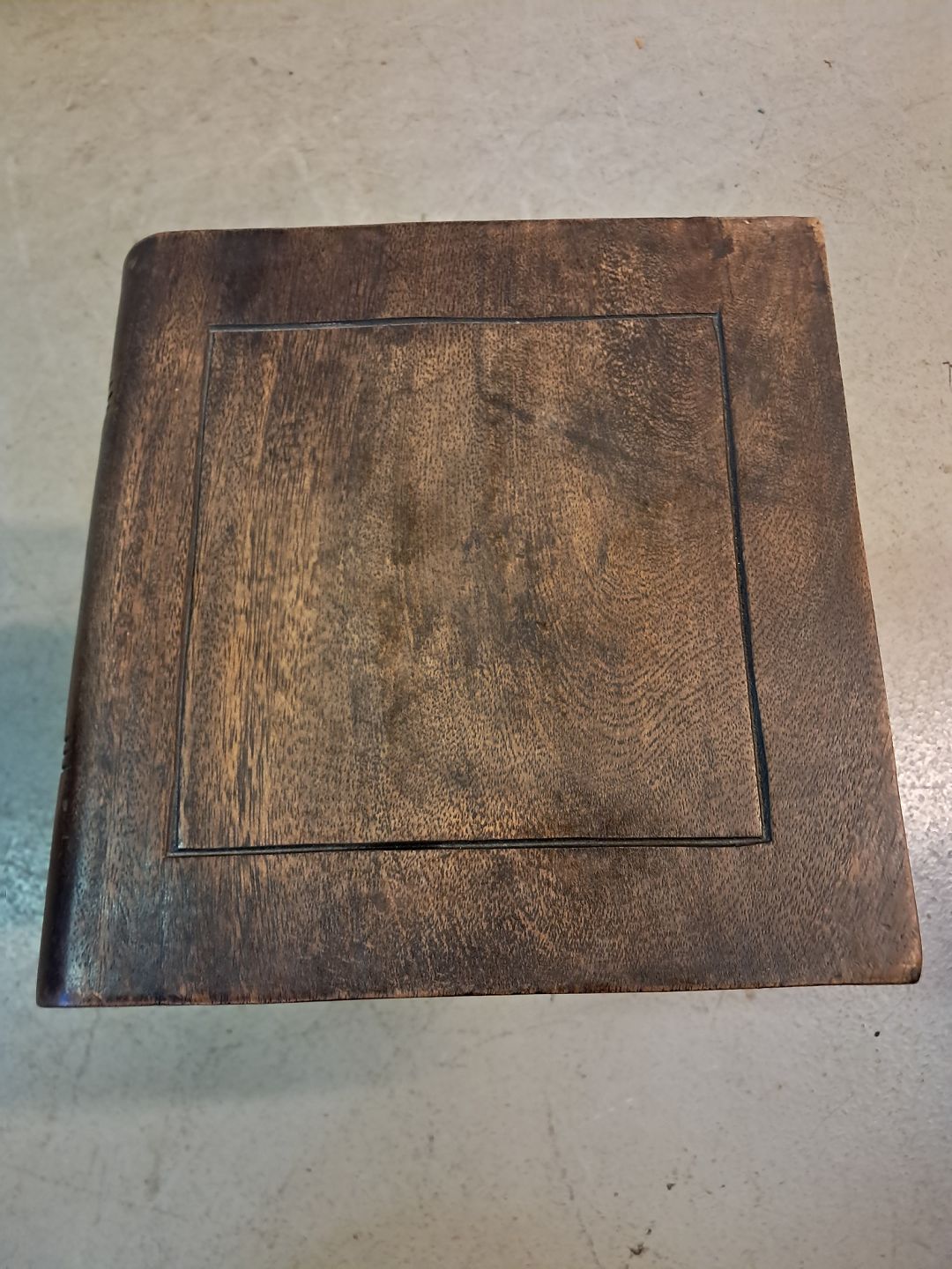 Piedestal i massivt egetræ, fra 1990erne.Den har brugsspor.