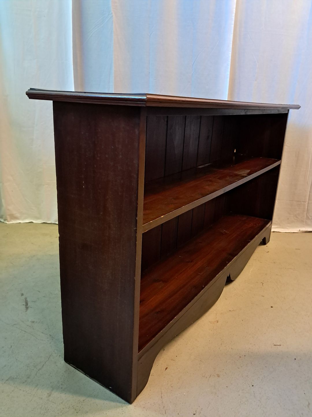 Reol i fineret mahogni, fra 1910erne.Den har brugsspor.