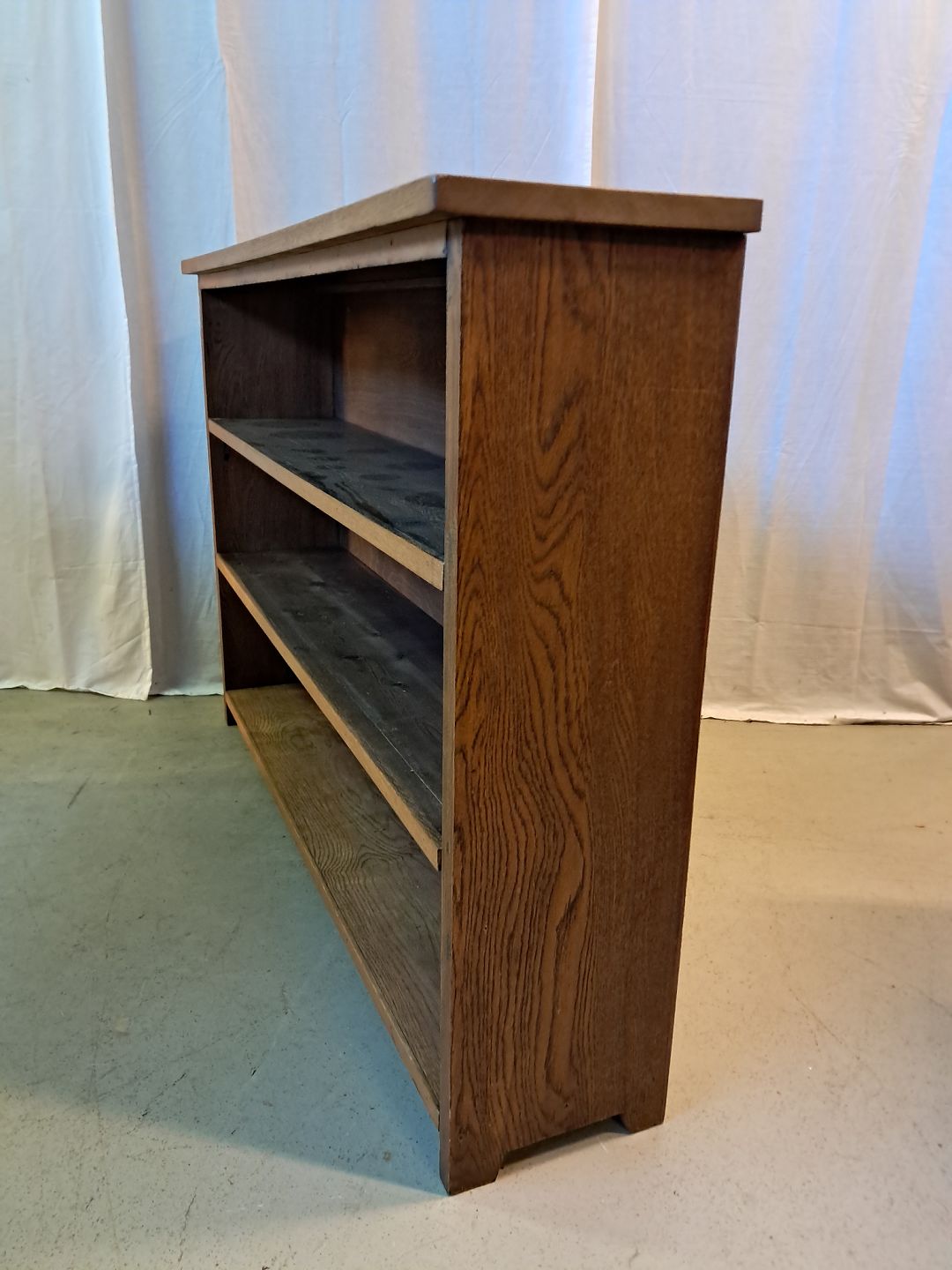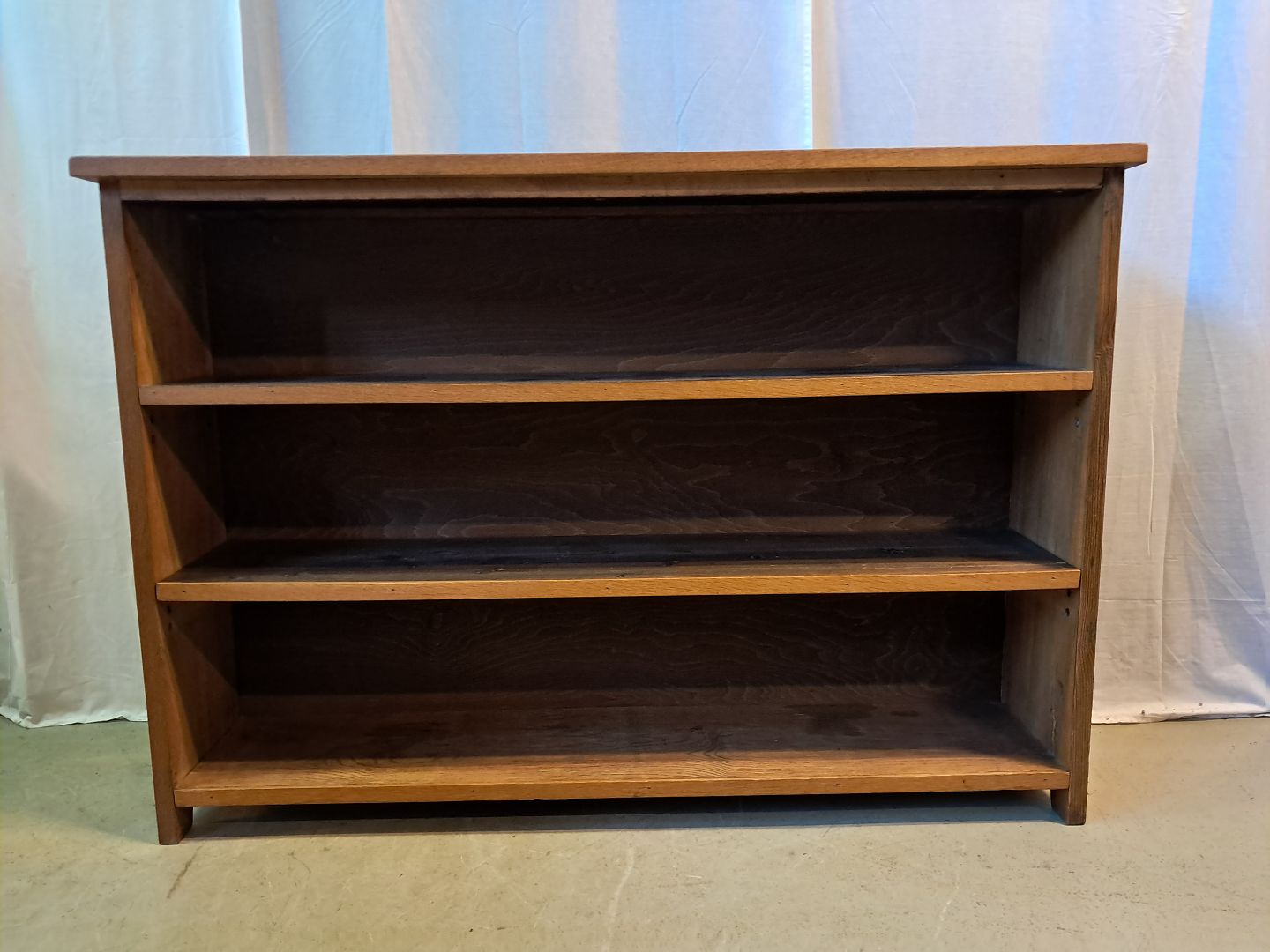 Reol i massivt egtræ, fra 1910erne.Den har brugsspor.