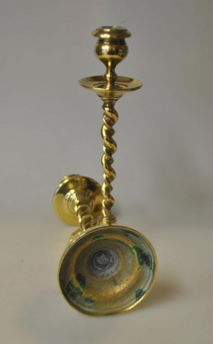Paar dänische antike Messingleuchter, 19. Jahrhundert. Mit gedrehtem Stiel. Höhe: 19 cm.Bestellnummer: 28512