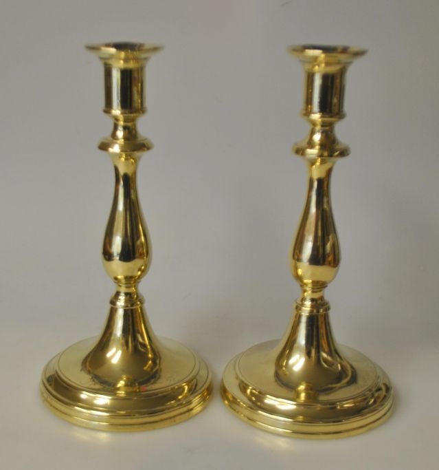 Paar dänische antike Messingleuchter, 19. Jahrhundert. Balusterförmiger Schaft. Höhe: 20 cm.Bestellnummer: 28514