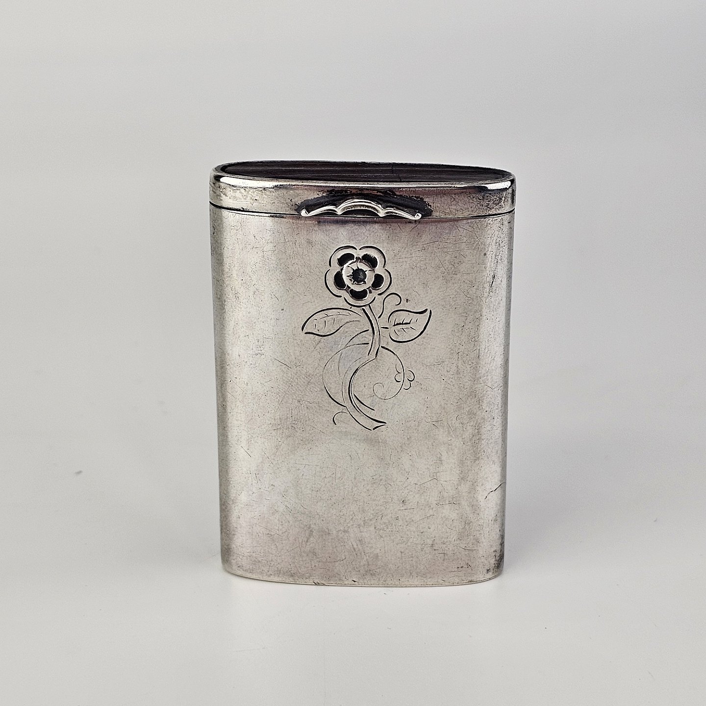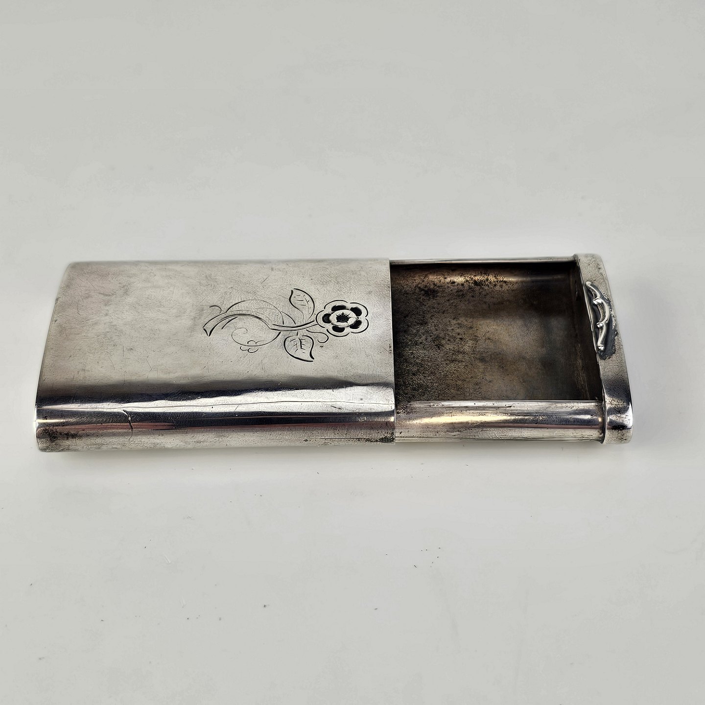Tændstiketui i 925 sterling sølv med indgraveret blomstermotiv Producent Georg Jensen
