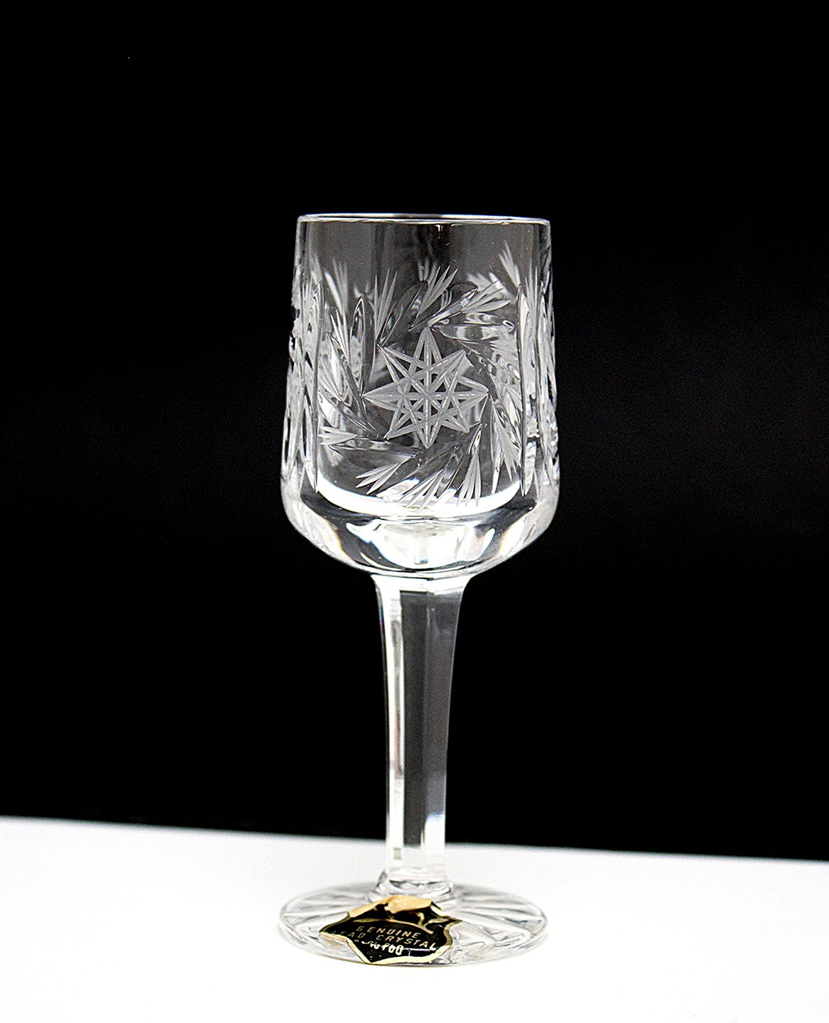 Lyngby glasværk, Granada, Snaps. Mundblæst og håndslebet 24 % Bøhmisk blykrystal med slibninger på kumme, slebet stilk og stjerneslebet fod. Importeret fra Tjekkiet i 1970'erne og solgt via Lyngby glasværk. Snaps. Højde ca. 10,5 cm. Øverste diameter 4 cm. Pris: 60 kr. stk. Lager: 12+