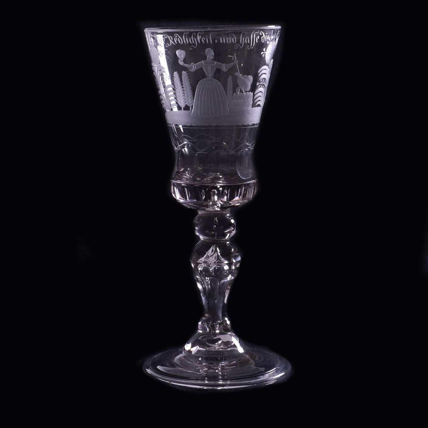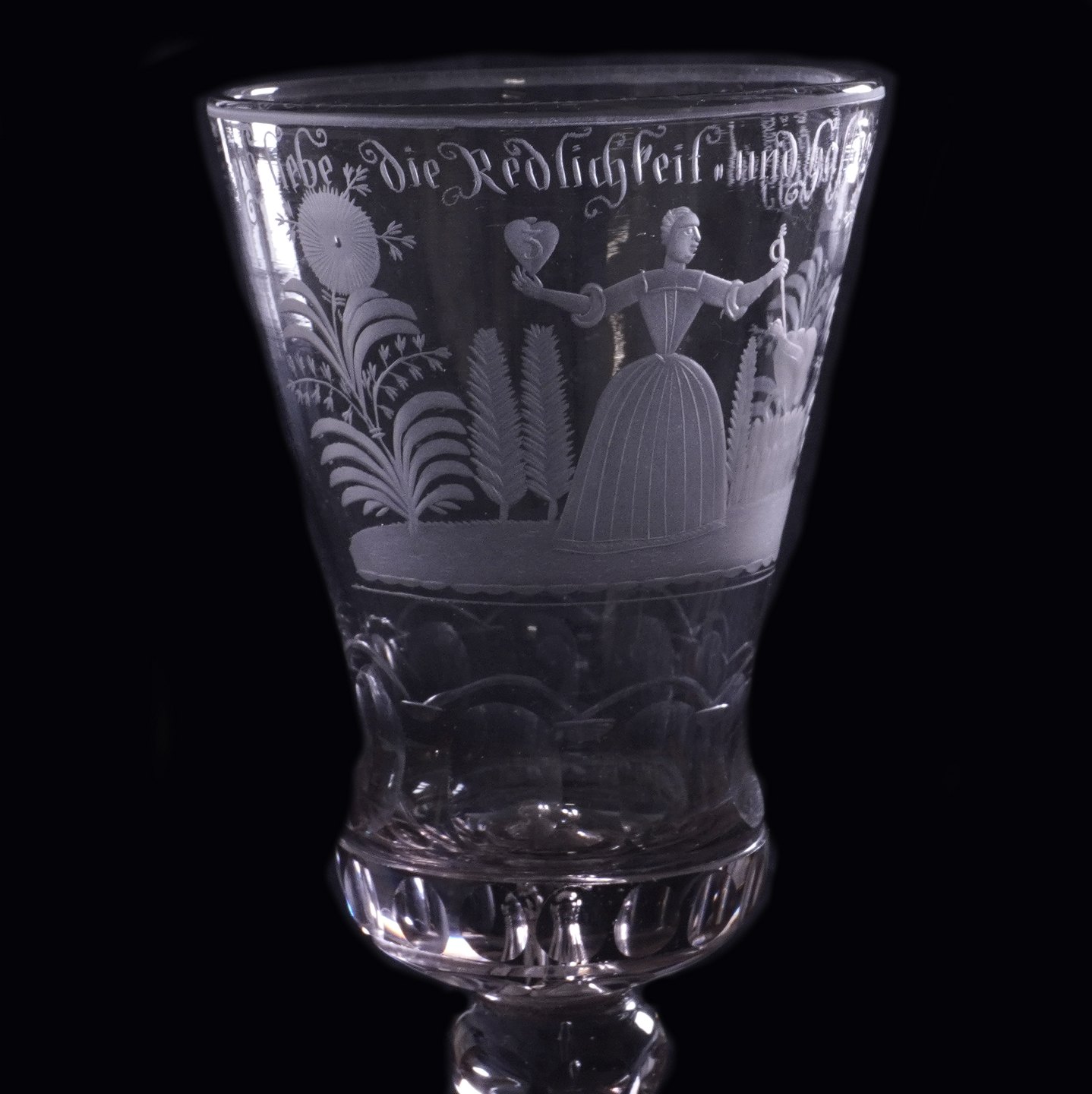 Deutscher Glaspokal mit der Gravur "Ich liebe die Redlichkeit und hasse die Falschheit"Sachsen oder Dresden um 1740