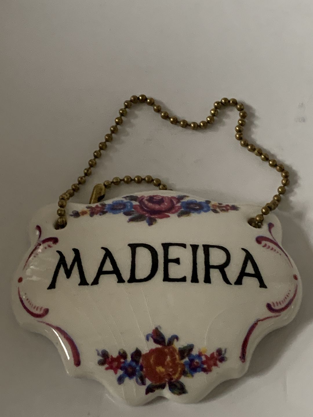 Flaske / Karaffel Madeira skilt med kædeStørrelse 7 x 5,5 cm.