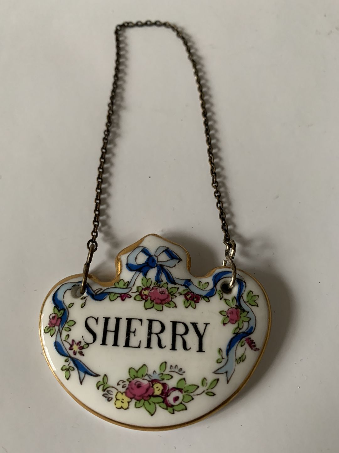 Flaske / Karaffel Sherry skiltStørrelse 5,3 x 4,2 cm.