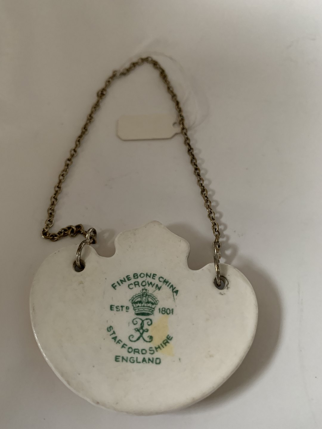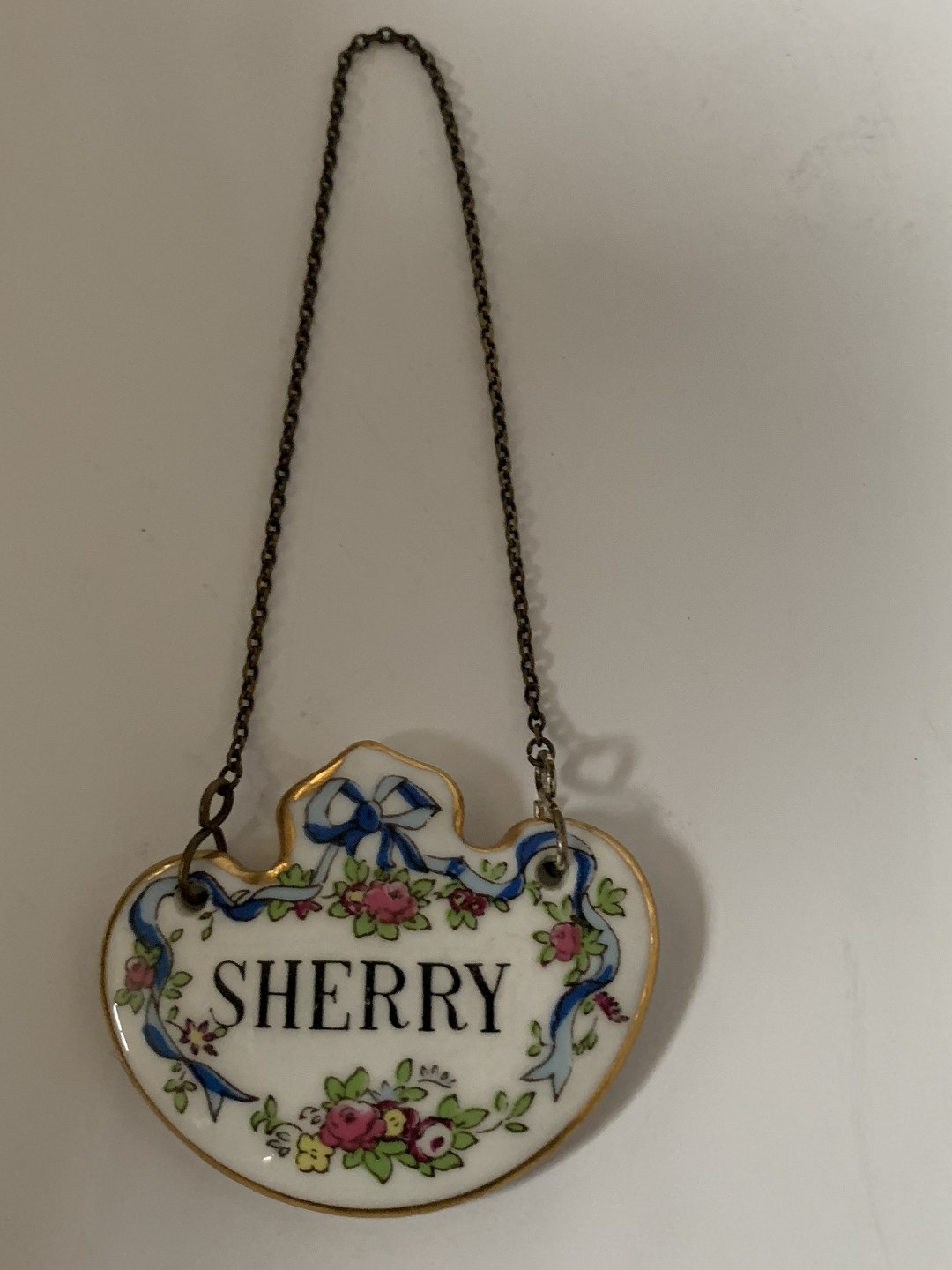Flaske / Karaffel Sherry skilt med kædeStemplet Stafford Shine England