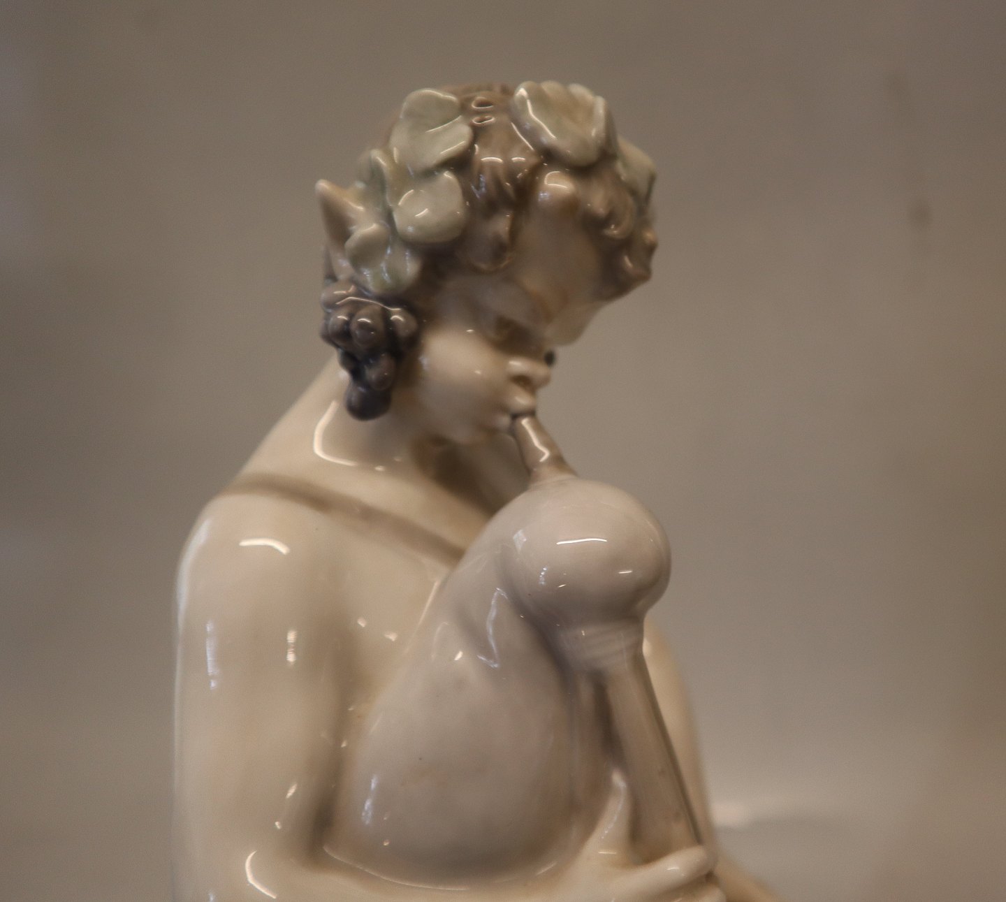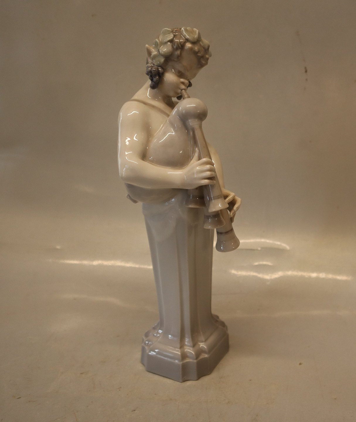 2071 Kgl. Pan med sækkepibe 26 cm Chr. Thomsen 1920 2nd. Porcelæn fra Royal Copenhagen I hel og fin stand Faun Bacchus, Skovånd, ElverEr lavet som par med Nymfe 2072 - spørg gerne på en samlet pris