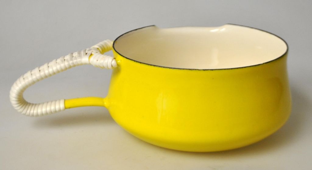 Quistgaard, Jens Harald (1919 - 2008) Dänemark: Butterkanne. Koben-Stil. Gelbe Emaille. Gestempelt. L.: 18 cm. Durchmesser: 11,5 cm.Scheint unbenutzt zu sein!