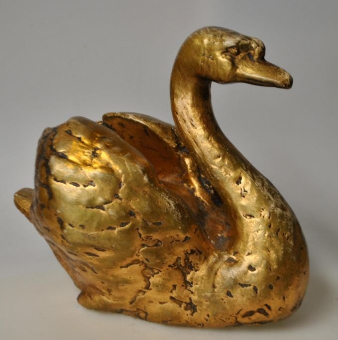 Vergoldeter Apothekerschwan, 19. Jahrhundert. Schwanenapotheke, Randers, Dänemark. L. 23 cm. H.: 20 cm. Dekoration aus der Apotheke.Herkunft: Die inzwischen geschlossene Svane-Apotheke, Middelgade 2, Randers.