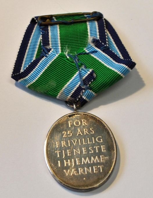 Silber Verdienstmedaille für 25 Jahre in der Heimwehr. Dänemark. Am Band. In der dazugehörigen Schachtel. 3,3 x 2,8 cm.Bestellnummer: 28377