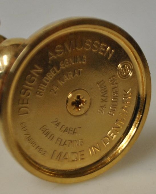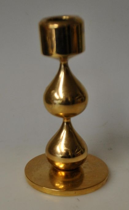 Asmussen Tropfenkerzenständer, 20. Jahrhundert. Middelfart. Dänemark. Vergoldetes Messing. Gestempelt. Höhe: 12 cm. Mit zwei Tropfen.Super Zustand!