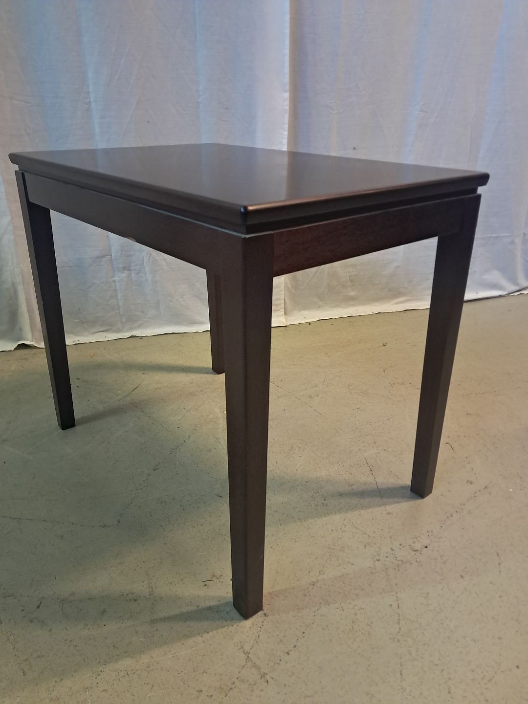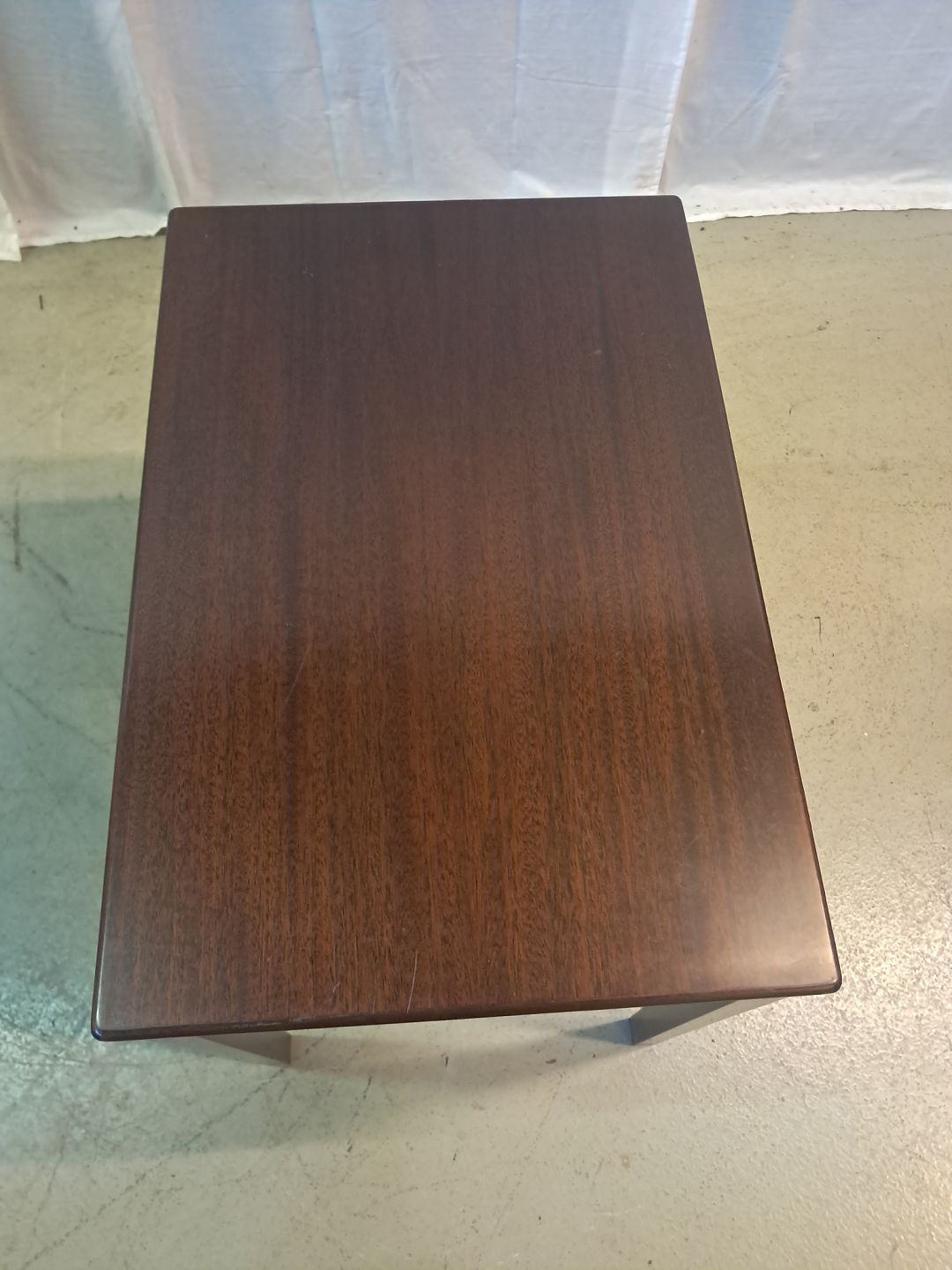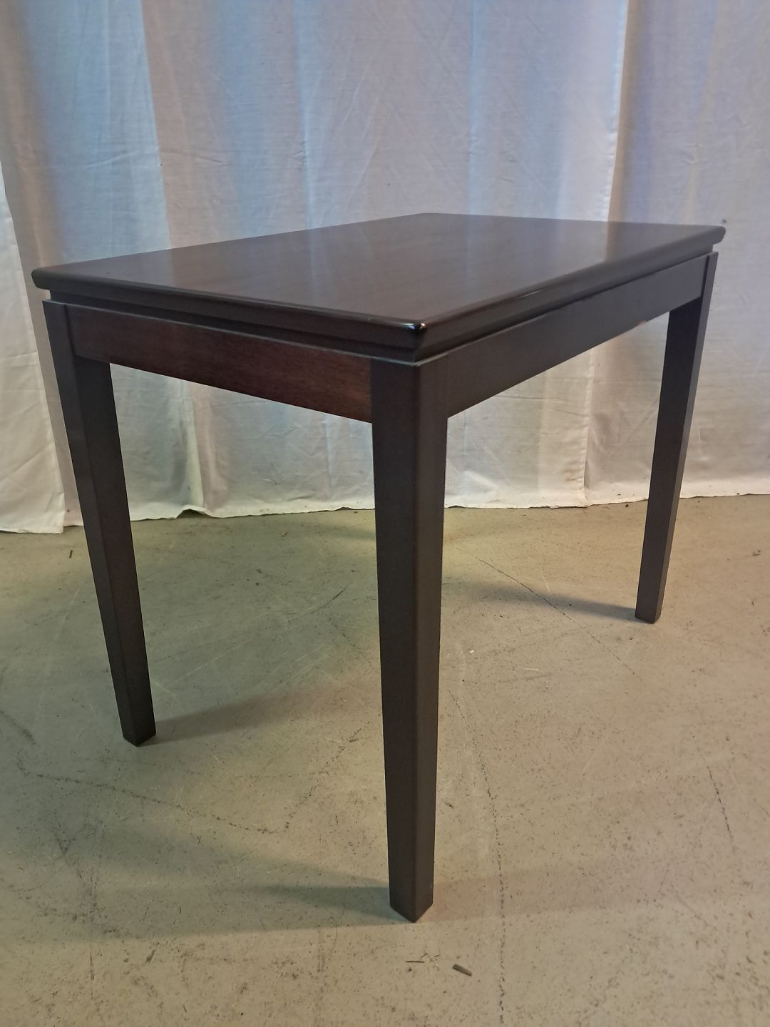Lampebord i fineret mahogni, fra 1980erne.Det har brugsspor.