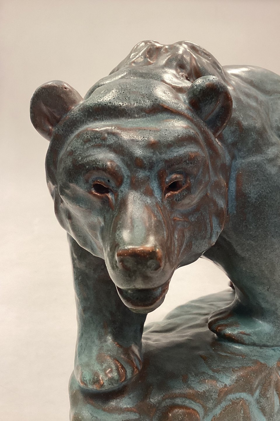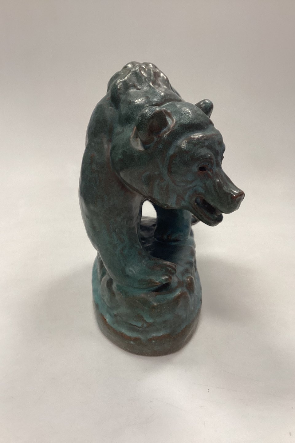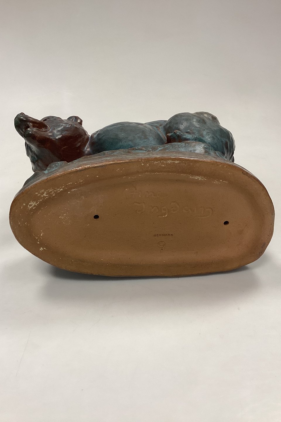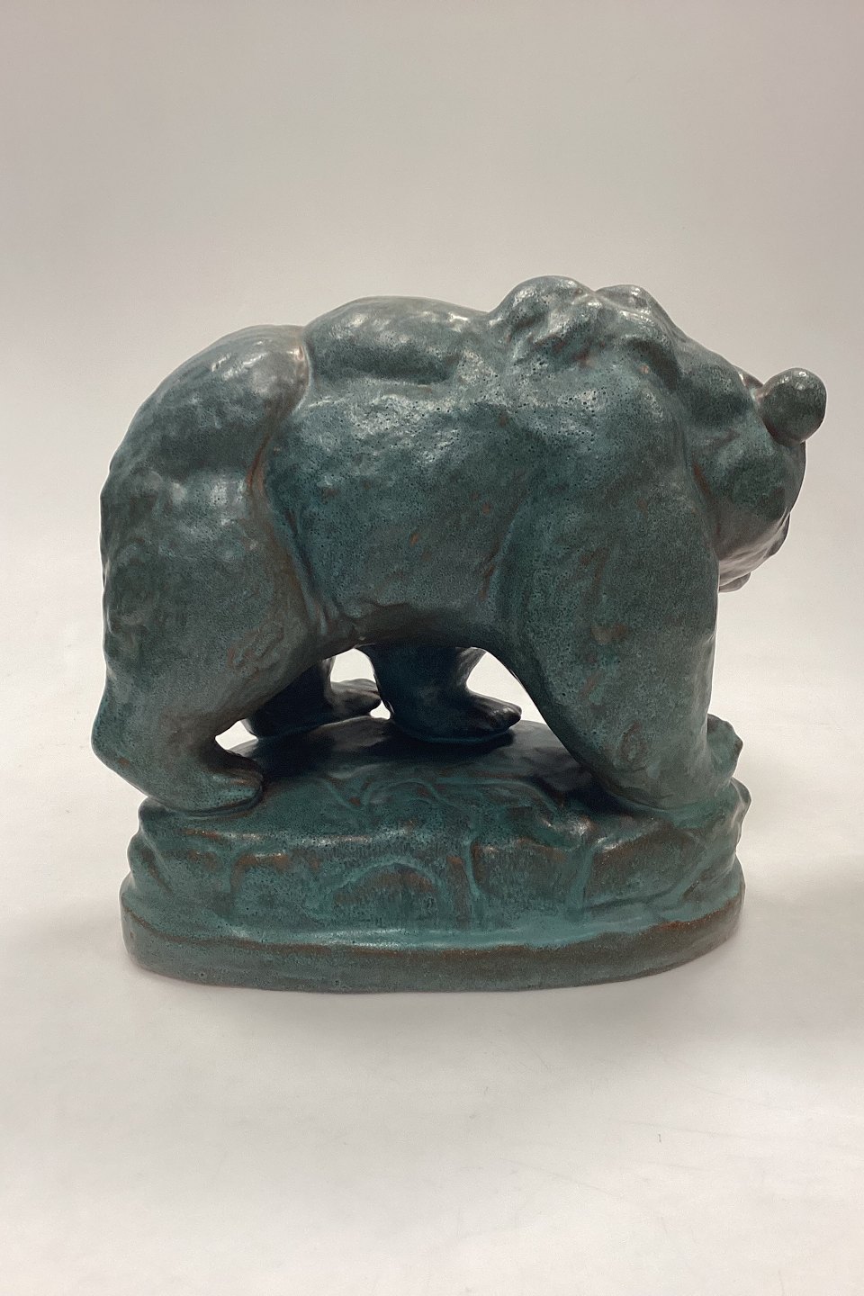 Arne Ingdam Stentøjsfigur af Bjørn. Turkisgrøn glasur på rødbrunt stentøj. Signeret og mærket med et 9-tal. I meget fin stand.Måler 23 cm høj, 25 cm lang / 9,05 in. H, 9,84 in. L.