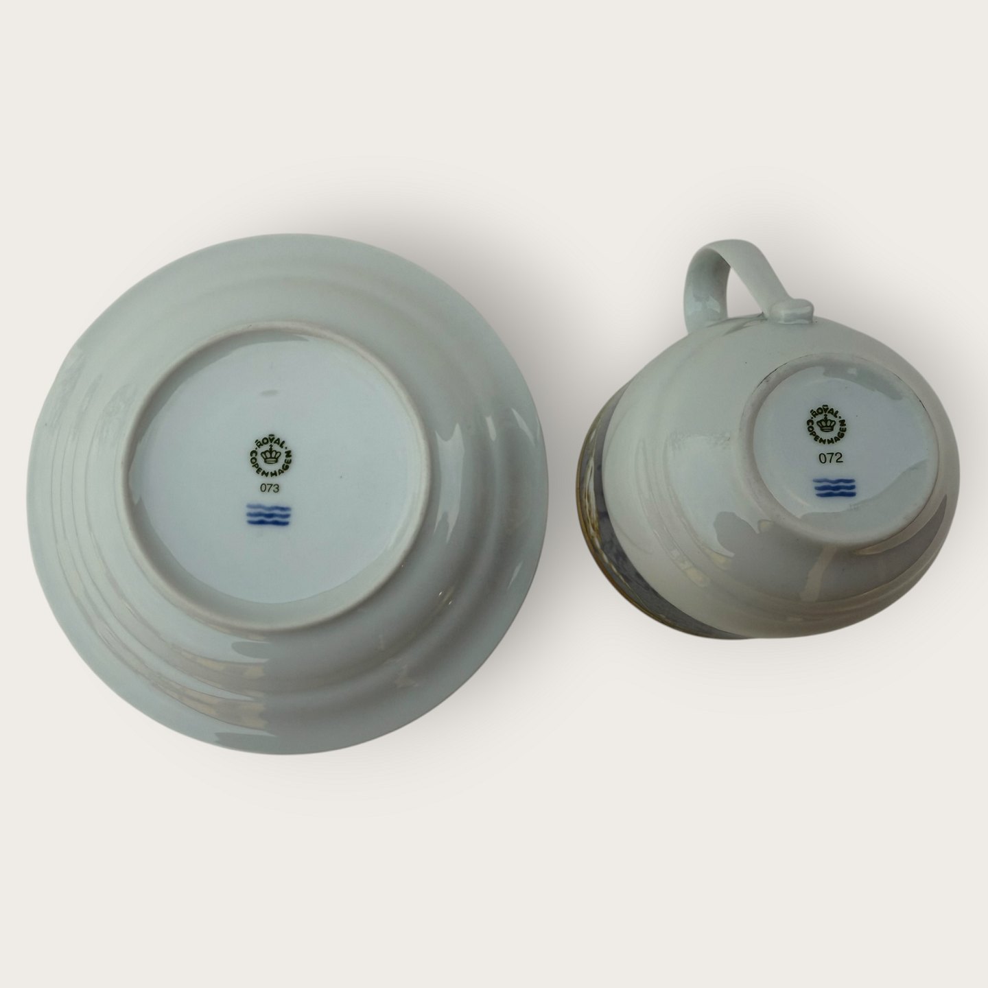 Royal Copenhagen, Grey Magnolia, Kaffeetasse, Nr. 072 0g 073 (Untertasse), 1. Wahl, Tasse 8 cm Durchmesser, 6 cm hoch, Untertasse 14,5 cm Durchmesser, Design Flemming Eskildsen *perfekter Zustand*Lager: 12