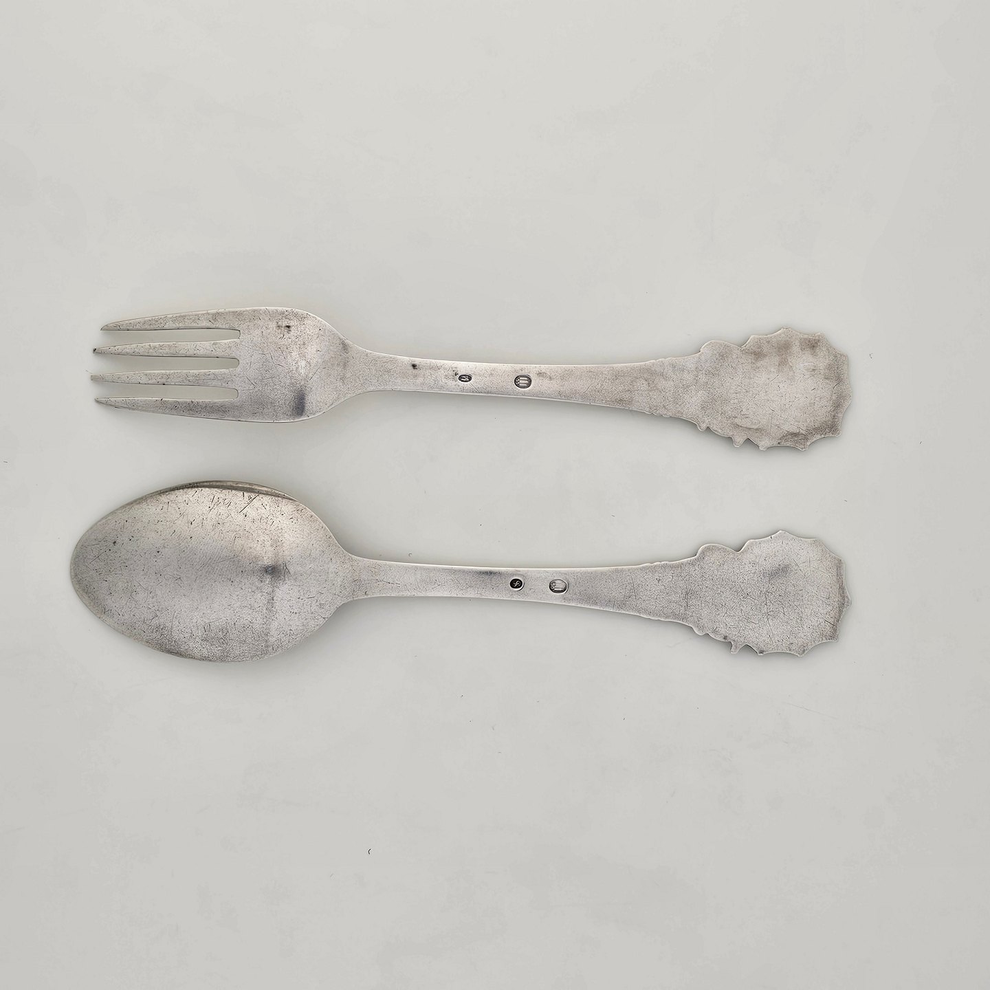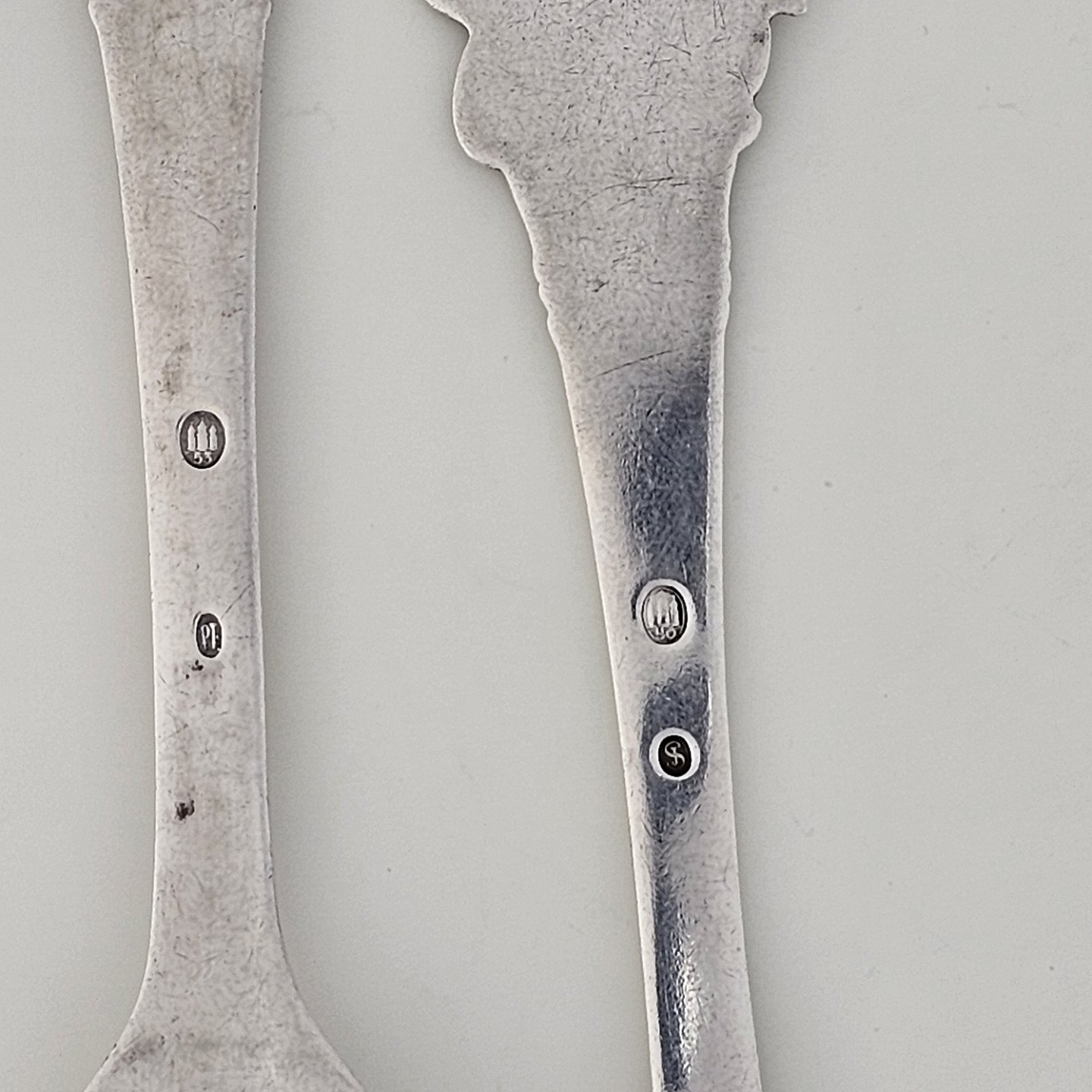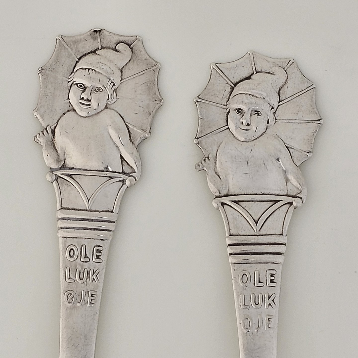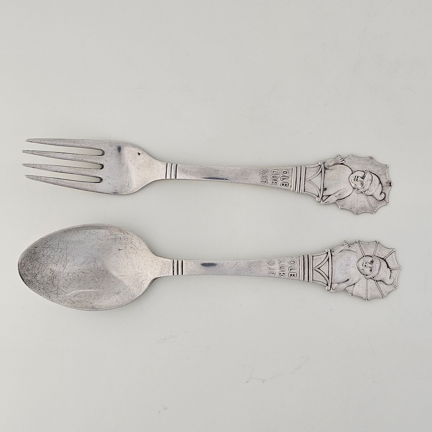 Gaffel og ske i tretårnet sølv med motiv af Ole LukøjeGaffel