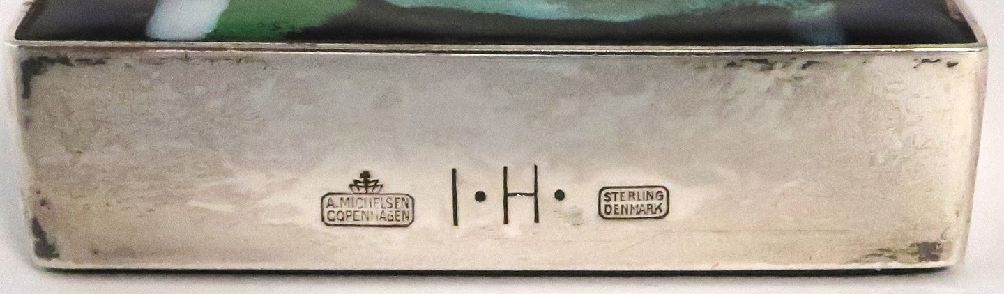 Michelsen. Briefbeschwerer aus Sterlingsilber mit Emaille (925). Inger Hanmann. Länge 13,2 cm. Breite 6 cm. Händler