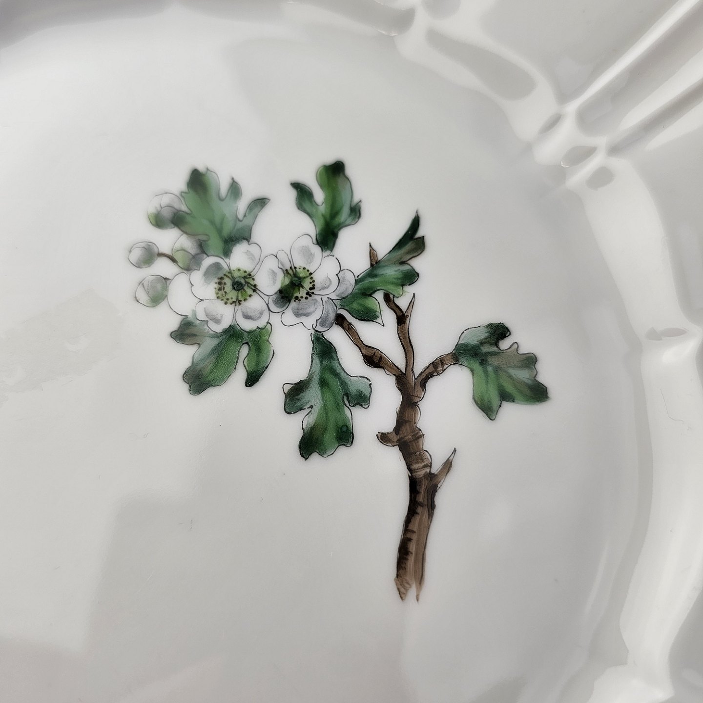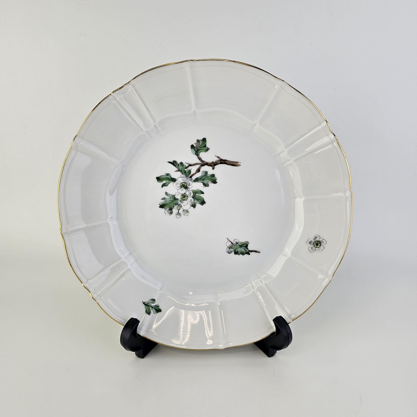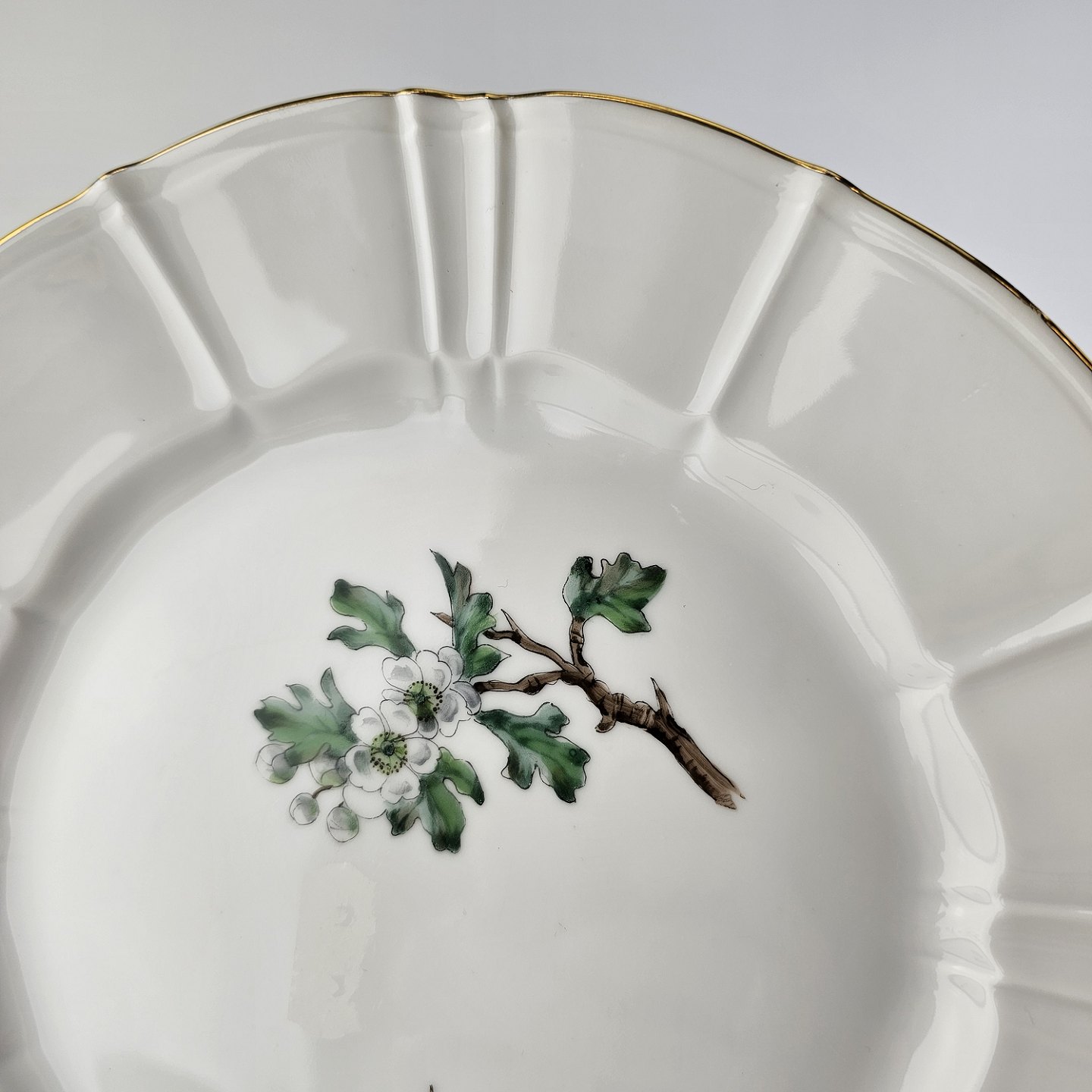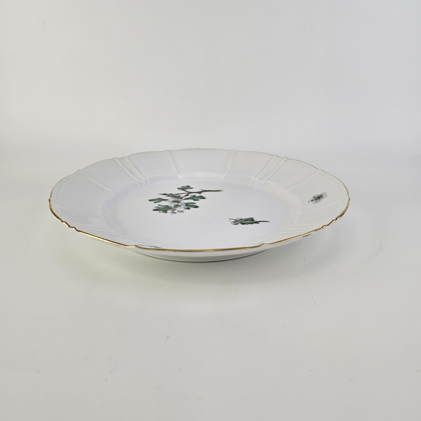 Eremitage er porcelæn dekoreret med hvidtjørn og guldkant