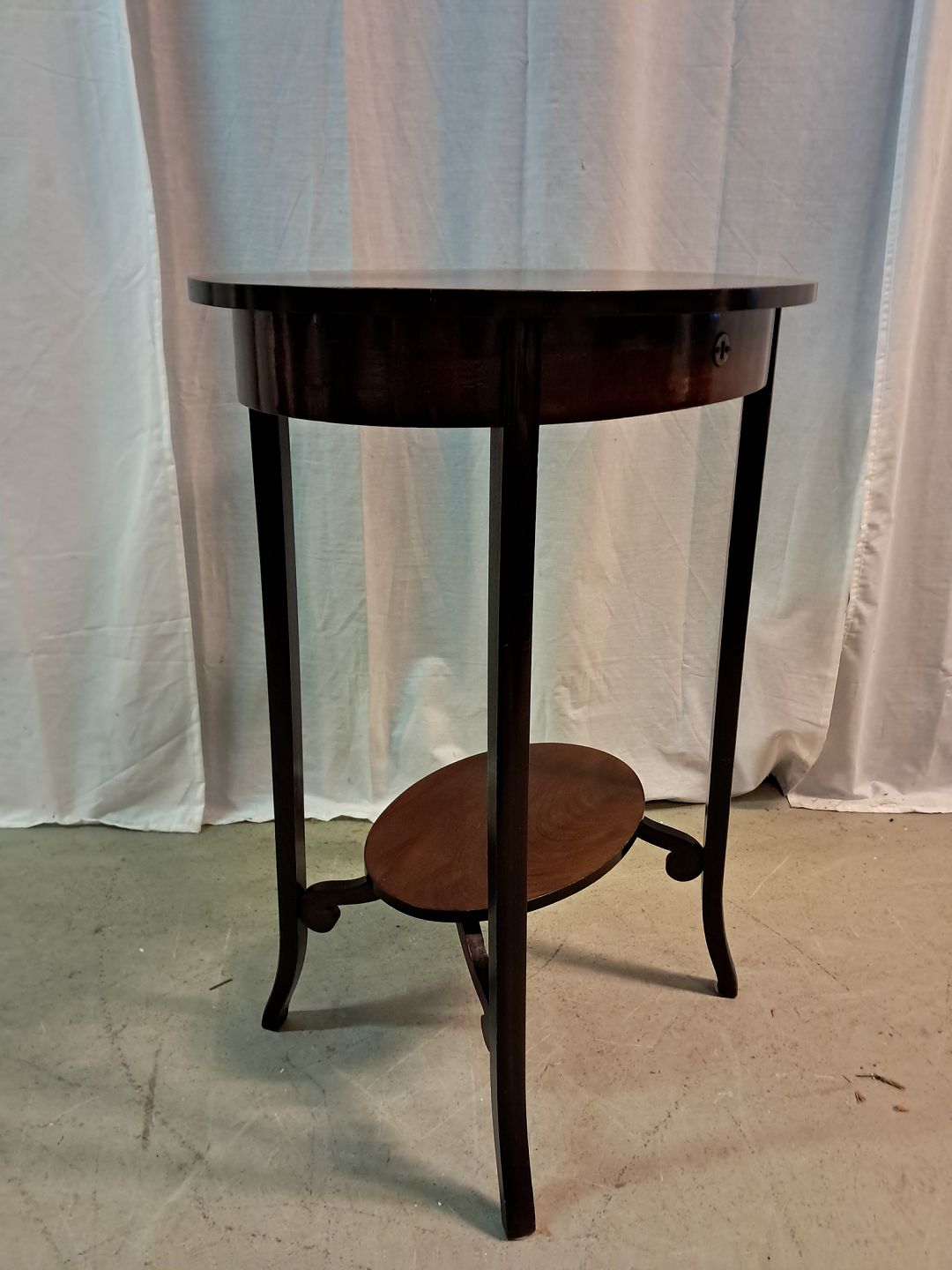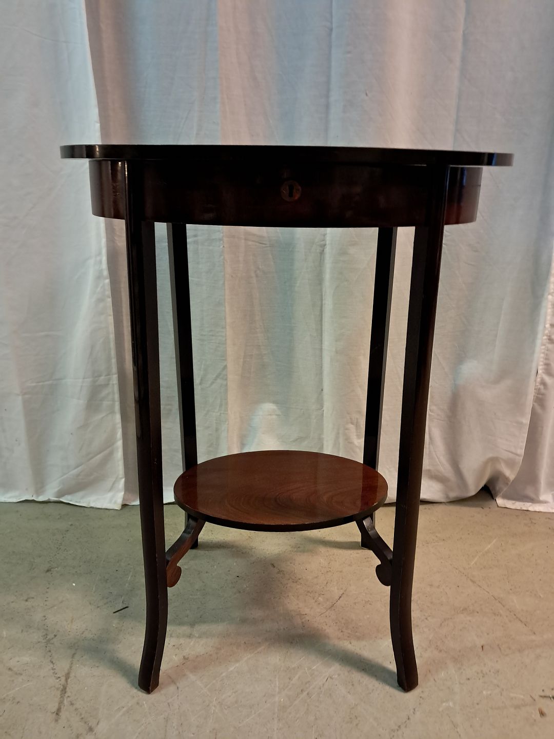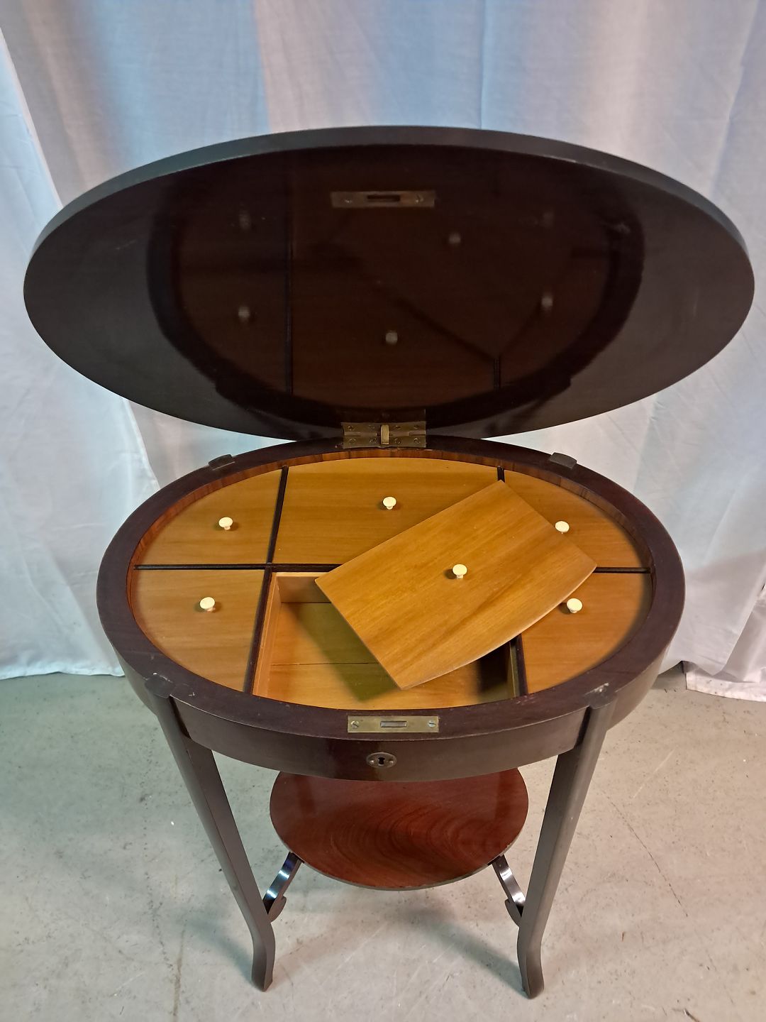 Sybord i fineret mahogni, fra 1920erne.Det har brugsspor og låsen er defekt.