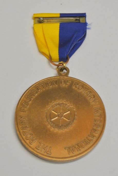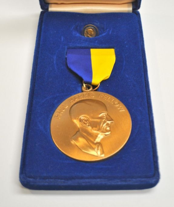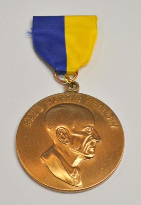 Paul Harris Fellow. Auszeichnung von Rotary International. 20. Jahrhundert. Bronzemedaille am Band. In Originalverpackung. Mit beiliegender Anstecknadel. Medaillendurchmesser: 5,4 cm.Bestellnummer: 28415
