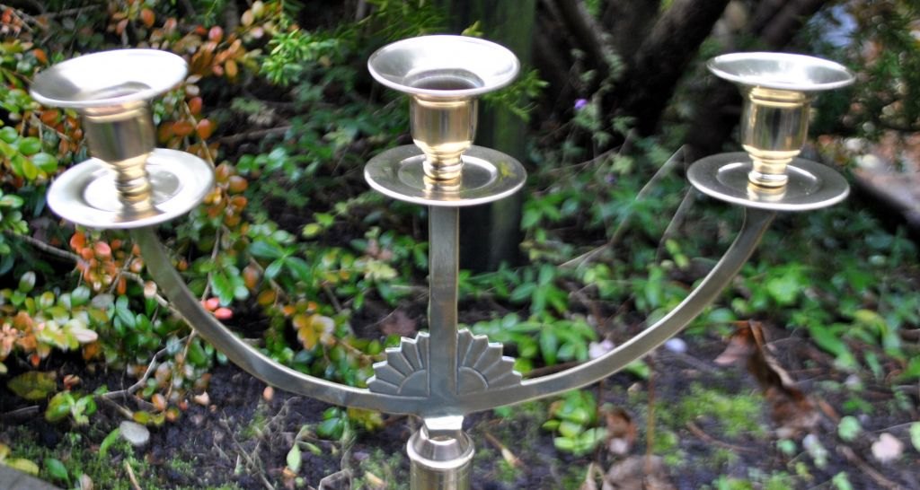 Paar dänische Jugendstil-Dreiarmleuchter aus Messing, um 1900. Höhe: 37 cm.Bestellnummer: 28538