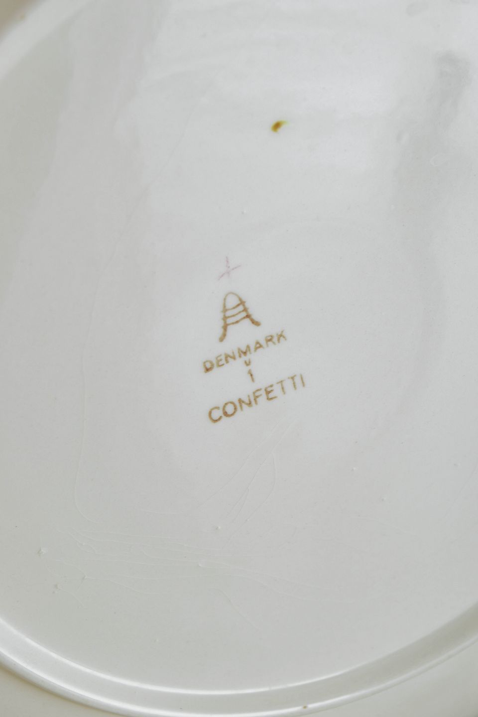 AluminiaConfetti-serien, midten af 1900-tallet. Sæt af seks "Susanne" middagstallerkener.