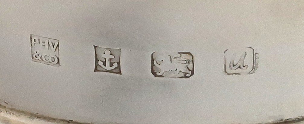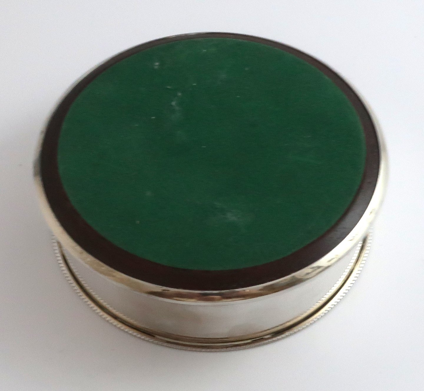 England. Birmingham. Flaschentablett aus Sterlingsilber mit Holzsockel (925). Durchmesser 11 cm. Händler