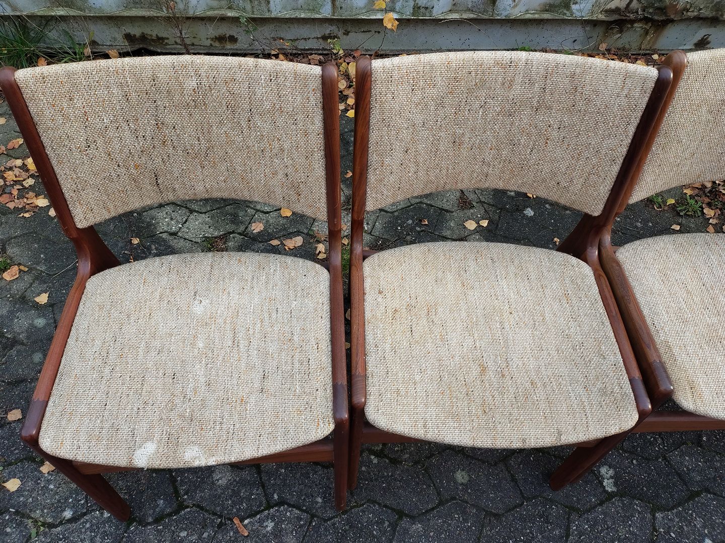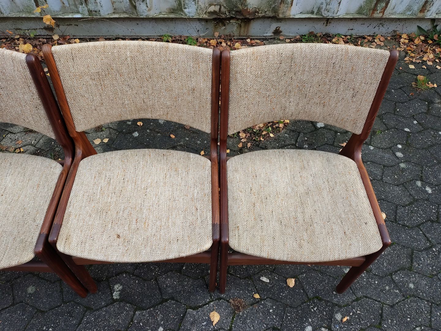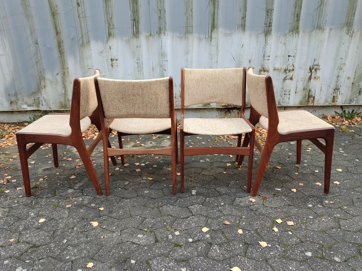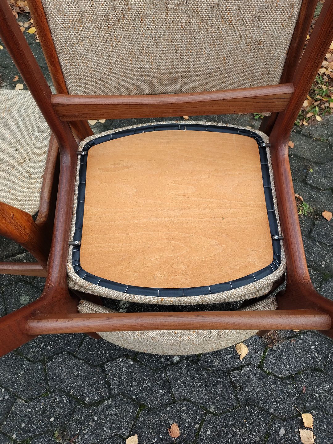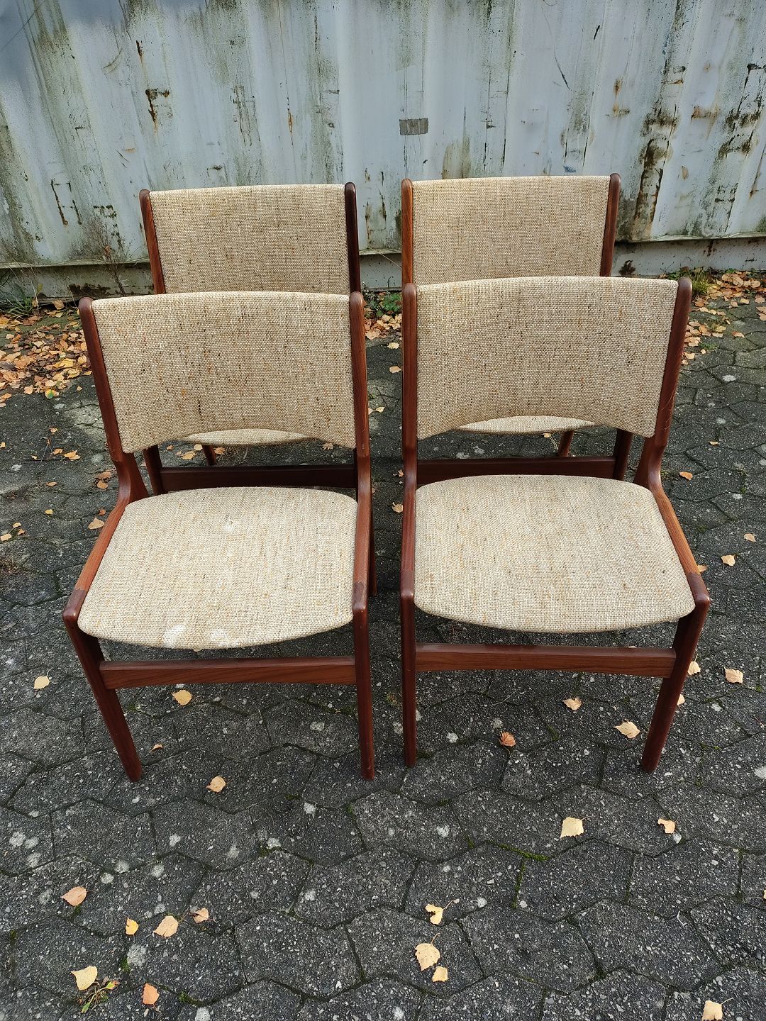 4 Stole i massivt teaktræ, fra 1960erne.De har defekt betræk.