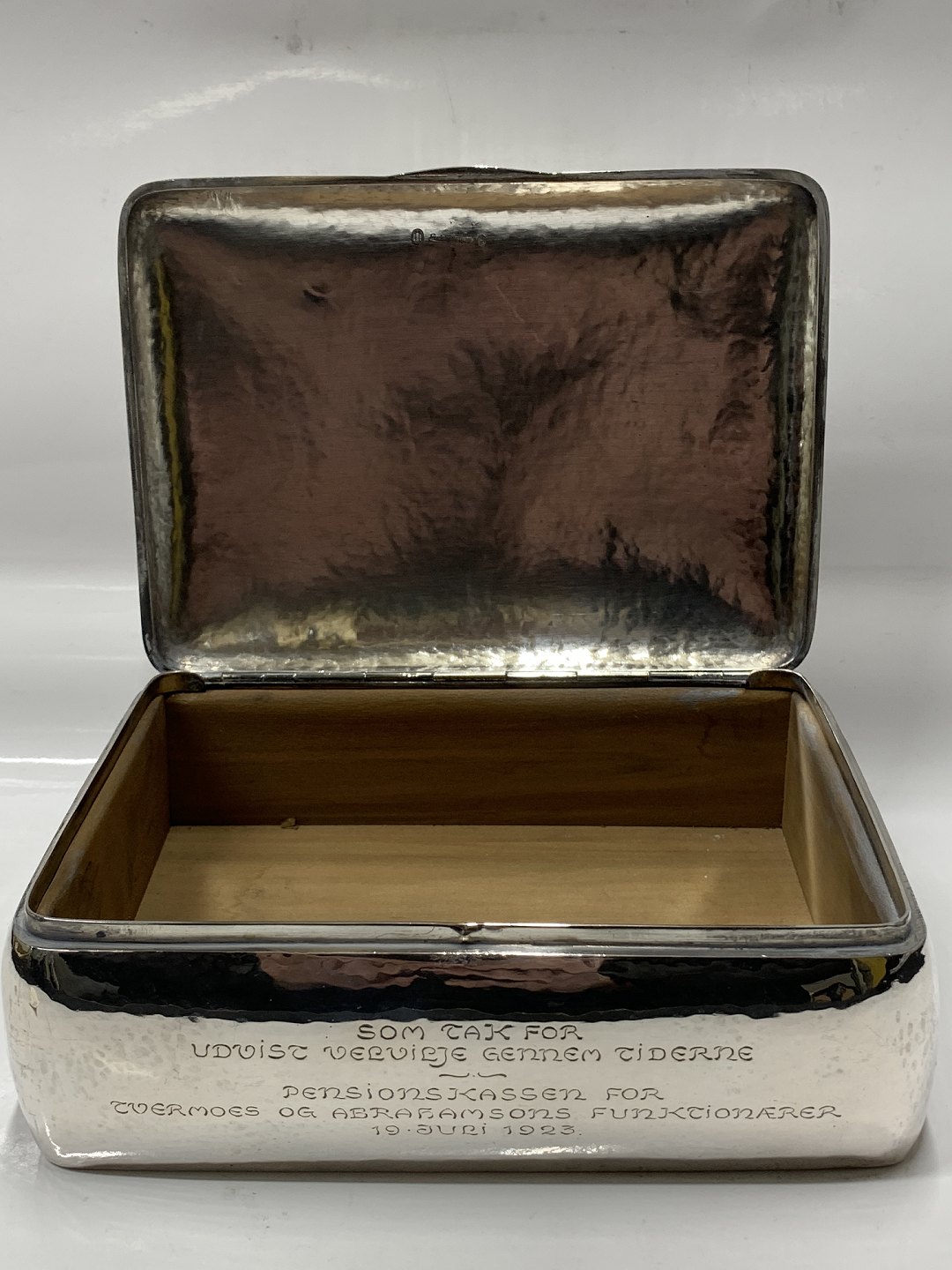 Sølv Cigar / smykke kasse hammerslået Evald NielsenMål 18,5 x 7 x 14,5 cm
