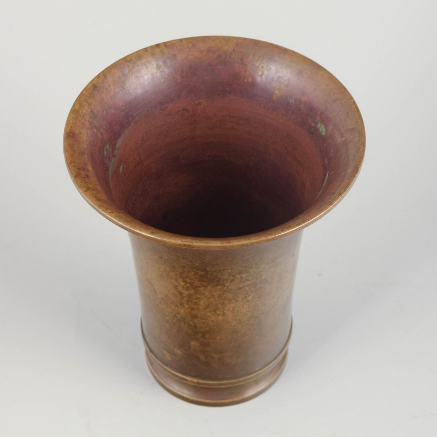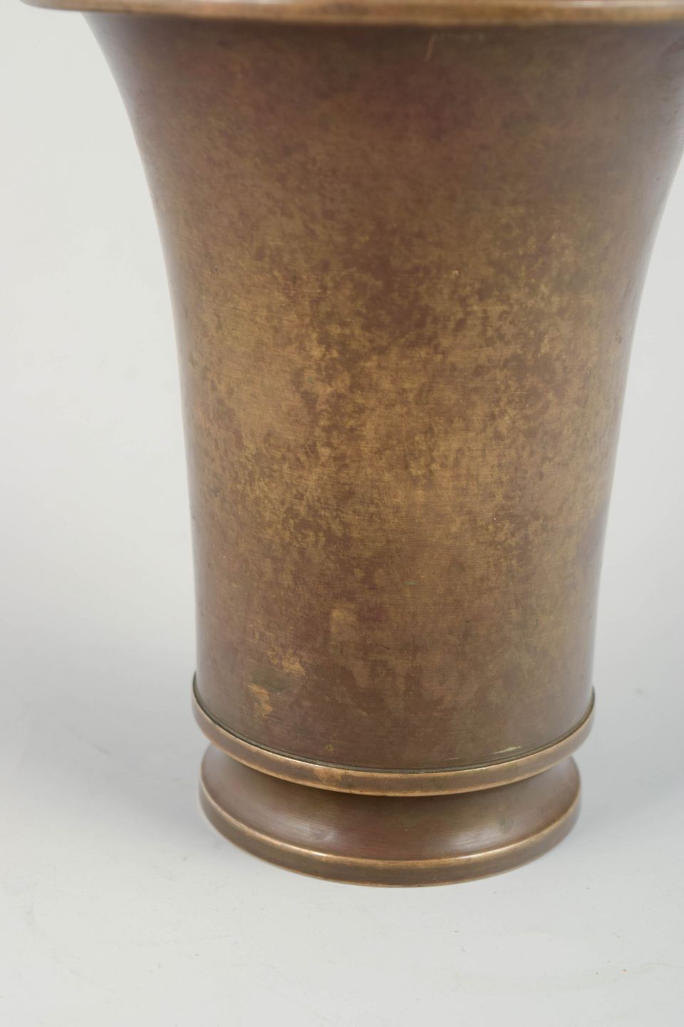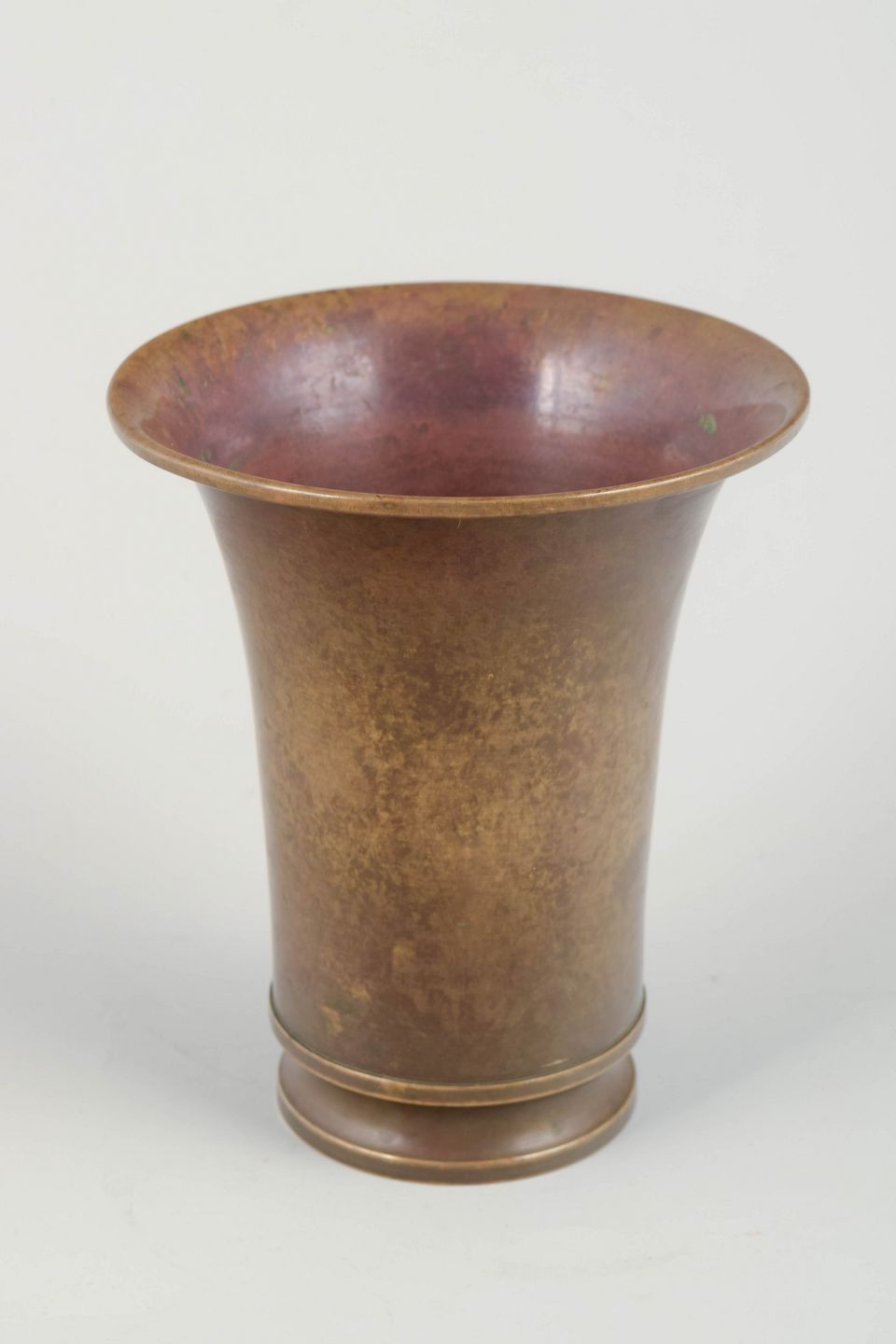 Tumulus bronze vase, 1940’erne.Klassisk Art Deco-vase i patineret bronze med konisk form og let udsvajet munding. Den varme brunlige overflade har naturlig patina og glød, typisk for perioden.