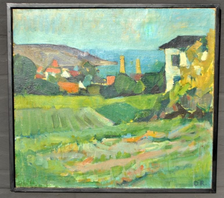 Dänischer Künstler (20. Jahrhundert): Stadtgebiet – Bornholm. Öl auf Leinwand. Signiert. OR 65 x 72 cm.Gerahmt: 67 x 75 cm.