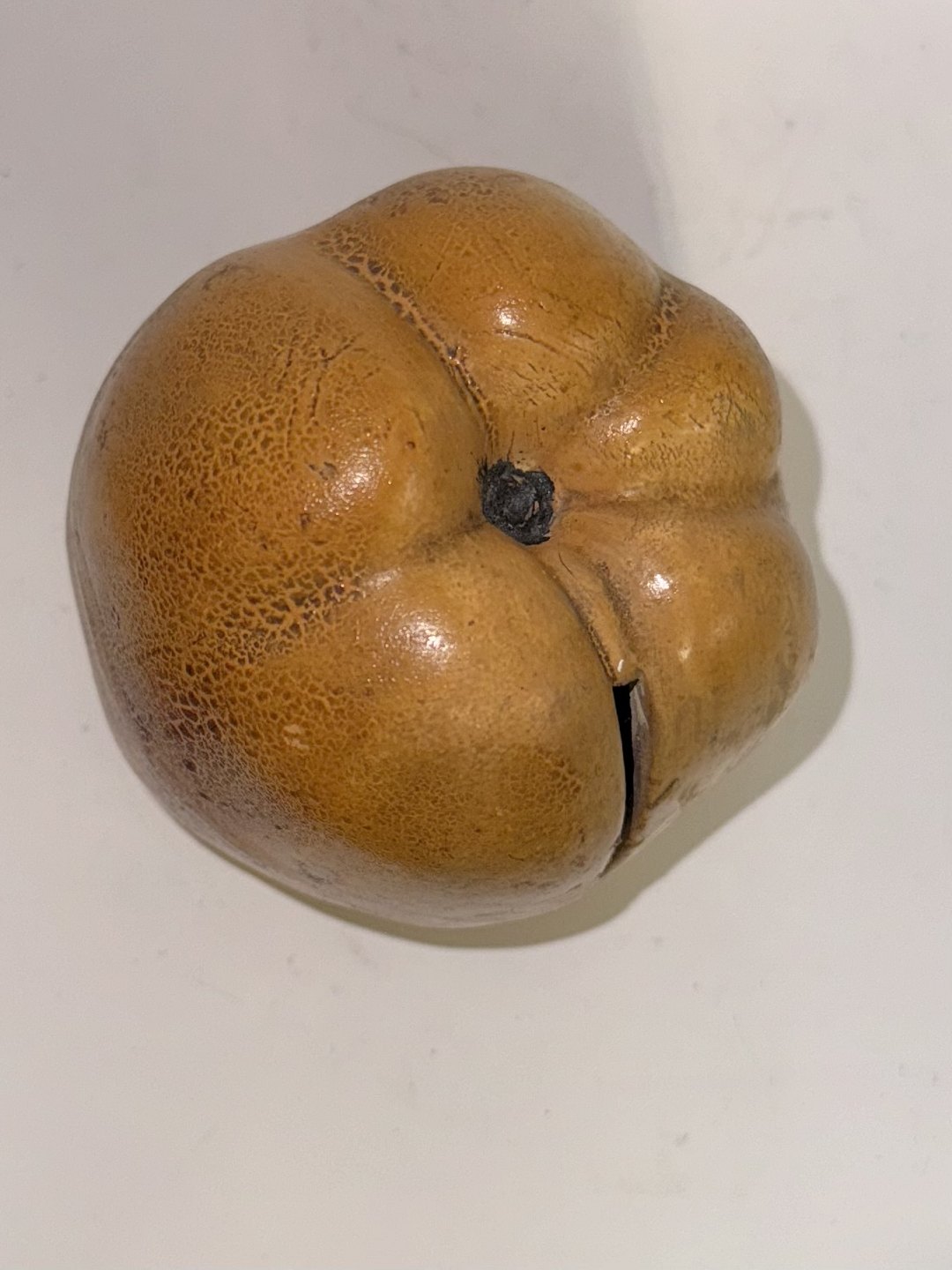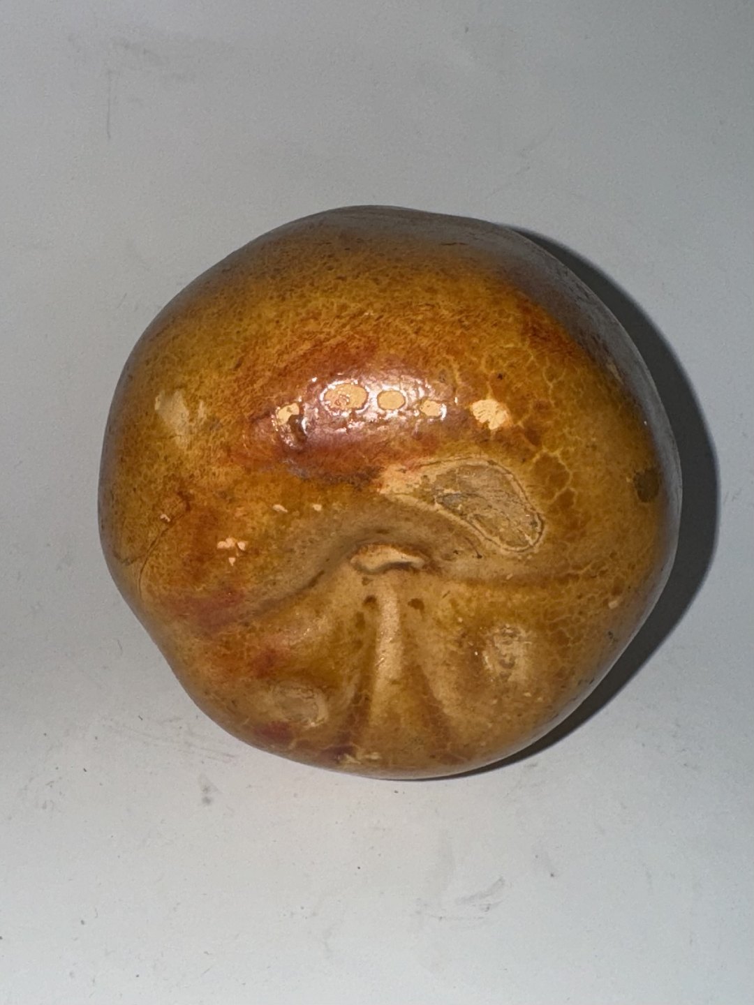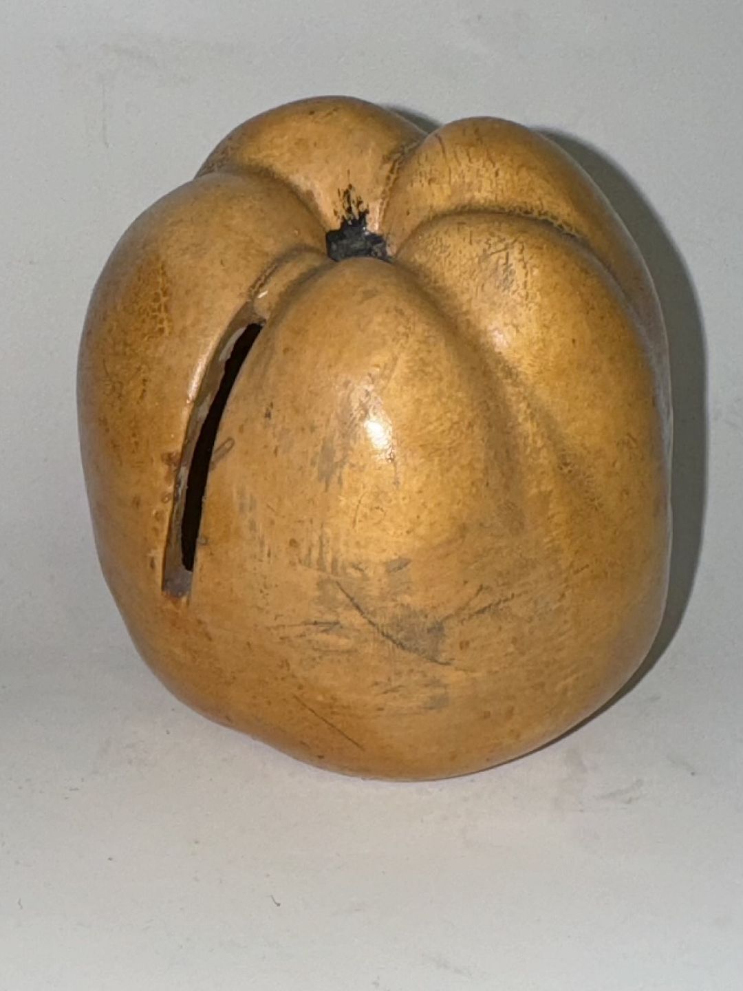Sparebøsse i keramik i form af æble. Fremstillet i begyndelsen af 20. århundrede. I god stand. H. 9 cm