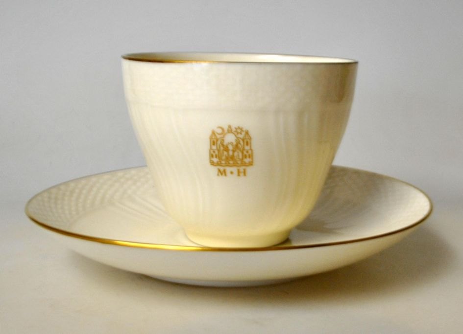 The cup originates from an event at Aarhus City Hall, where Crown Prince and Princess Magrethe and Henrik were visiting, after having already been married on June 10, 1967 in Copenhagen. They visited Aarhus on a summer cruise on the ship Dannebrog and were officially introduced. The Crown Prince and Princess were with King Frederik IX and Queen Ingrid. The event was on August 15, 1967. The day's program was secret, so we don't really know what happened. However, sources say that it was the first time Prince Henrik visited the city. The Crown Prince and Princess officially took over Marselisborg Castle in Aarhus in 1967 as a gift from Magrethe's father, King Frederik IX.
