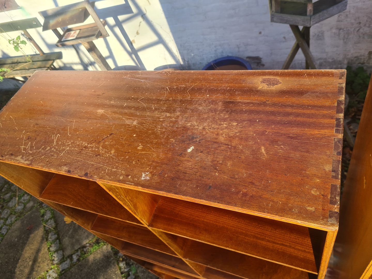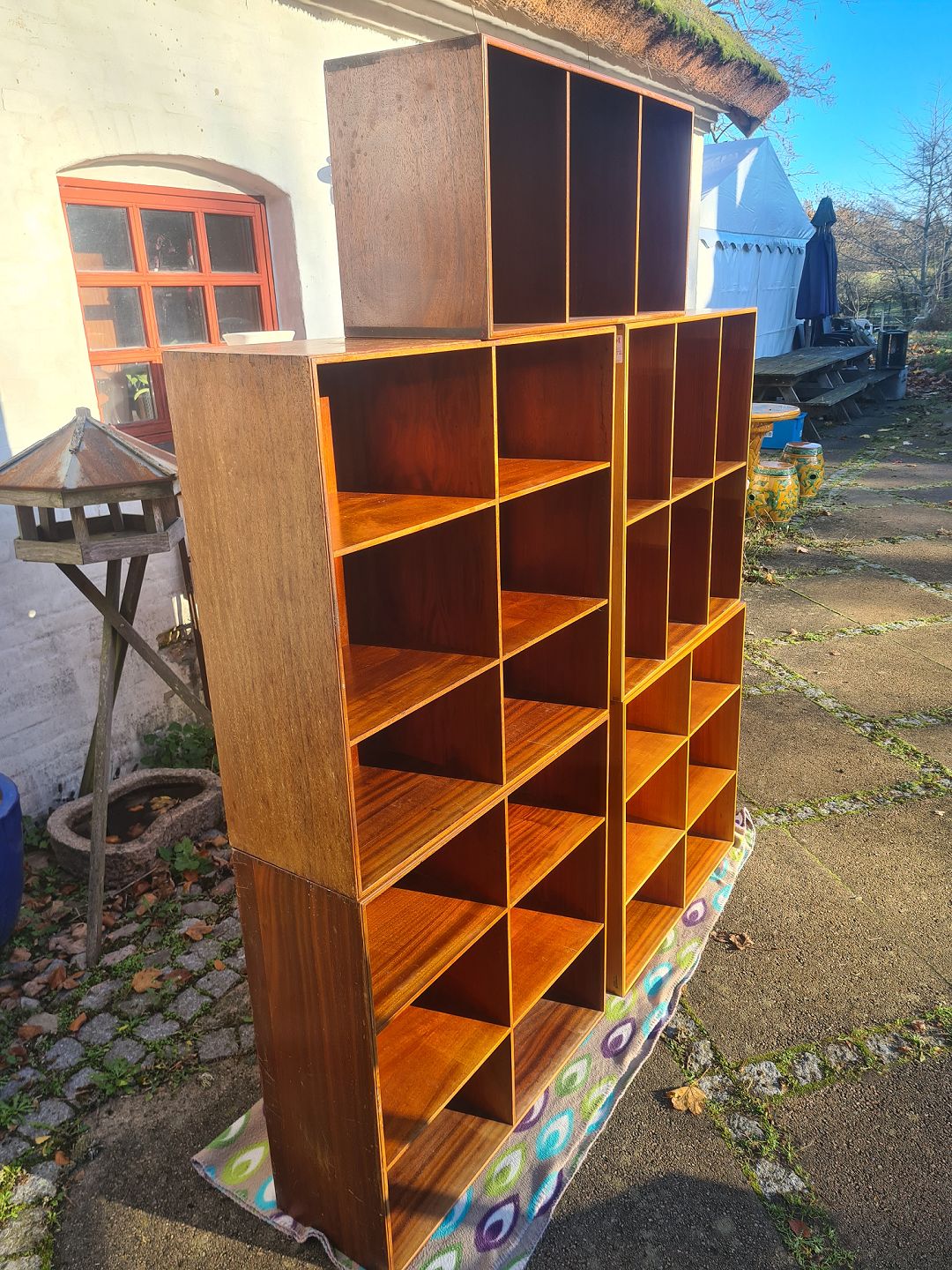 Mogens Koch reolvæg udført i massiv mahogni for Rud. Rasmussen. Mål: En hel reol, 76x76 cm. D. 27,5 cm. 4 stk.