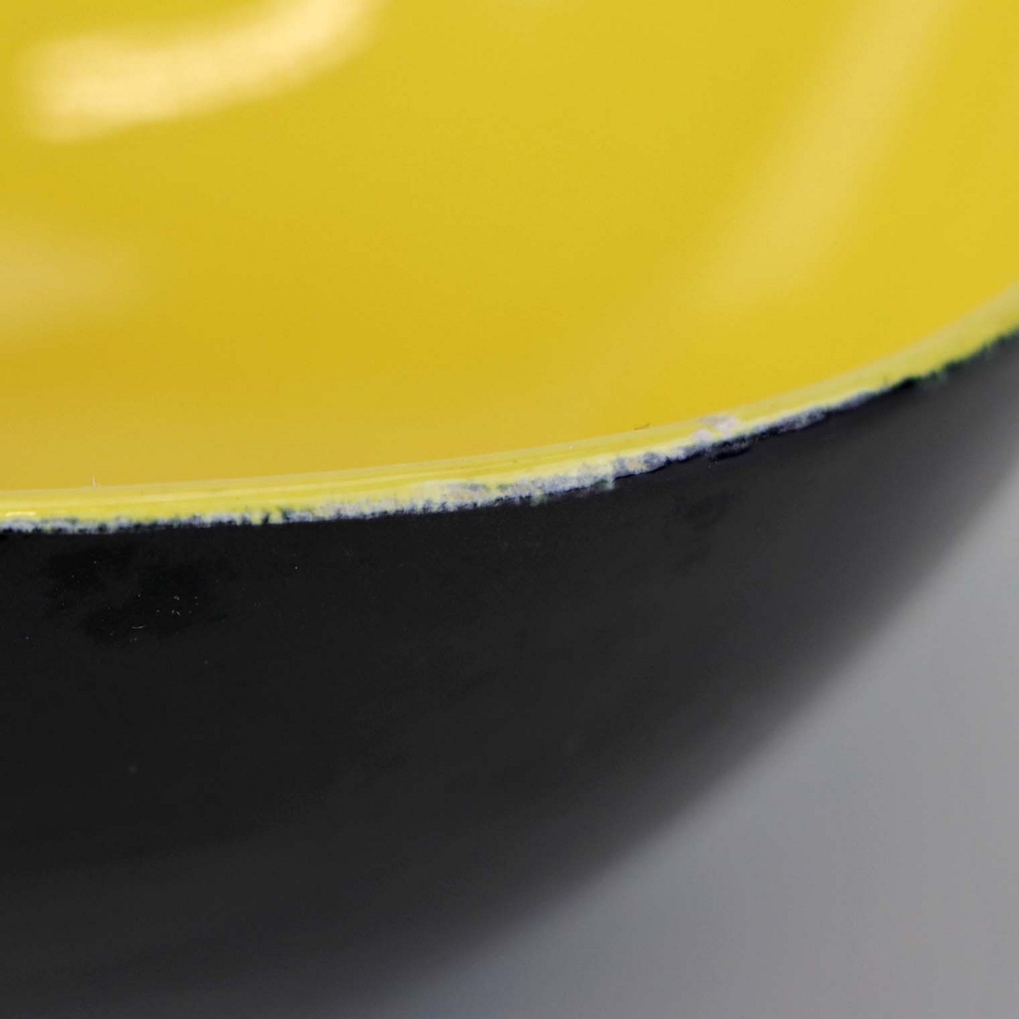 Fremstår med lettere krakkeleret inderside samt lidt ujævnhed ved kanten.
