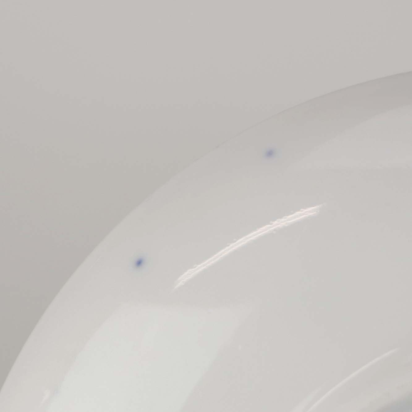 Musselmalet halvblonde er riflet hvidt porcelæn med dekoration af blå ranker og en kant med blonder.