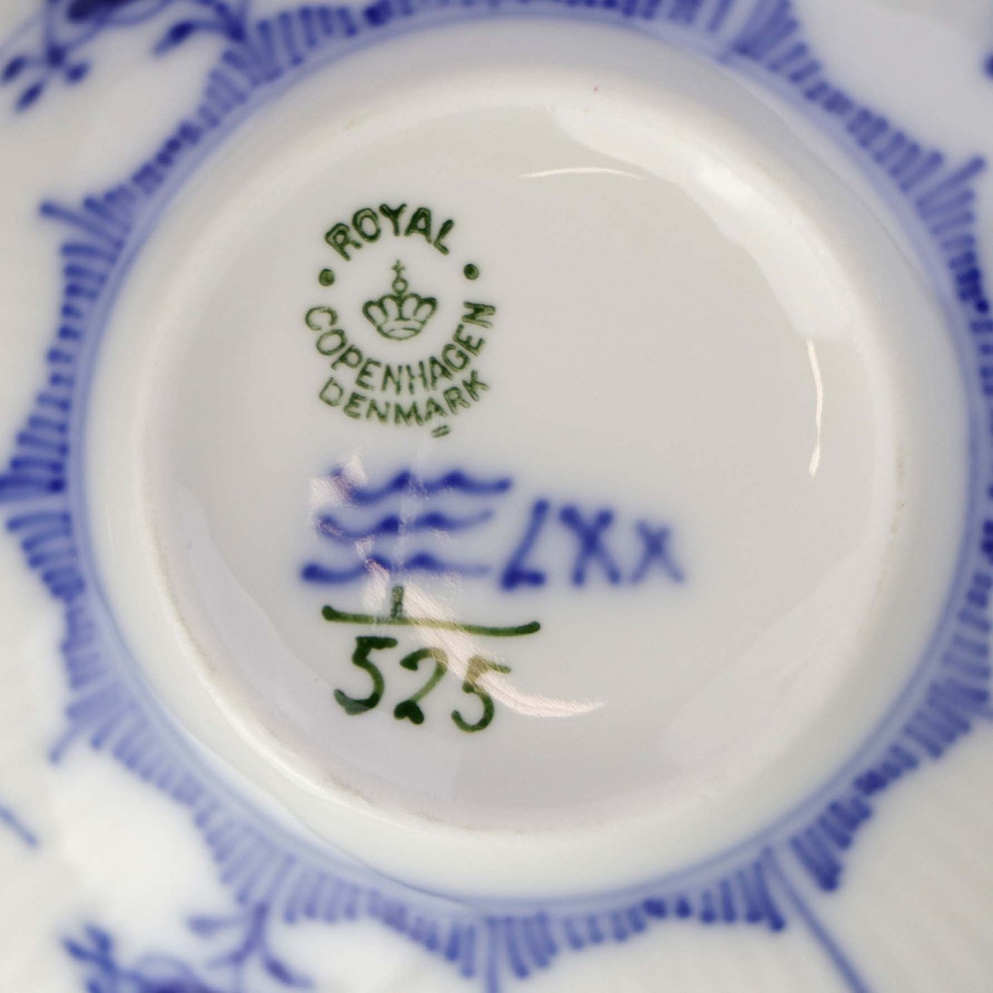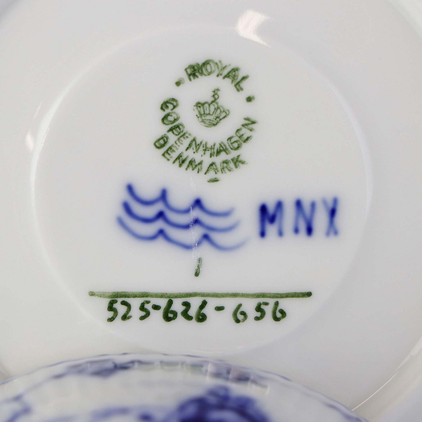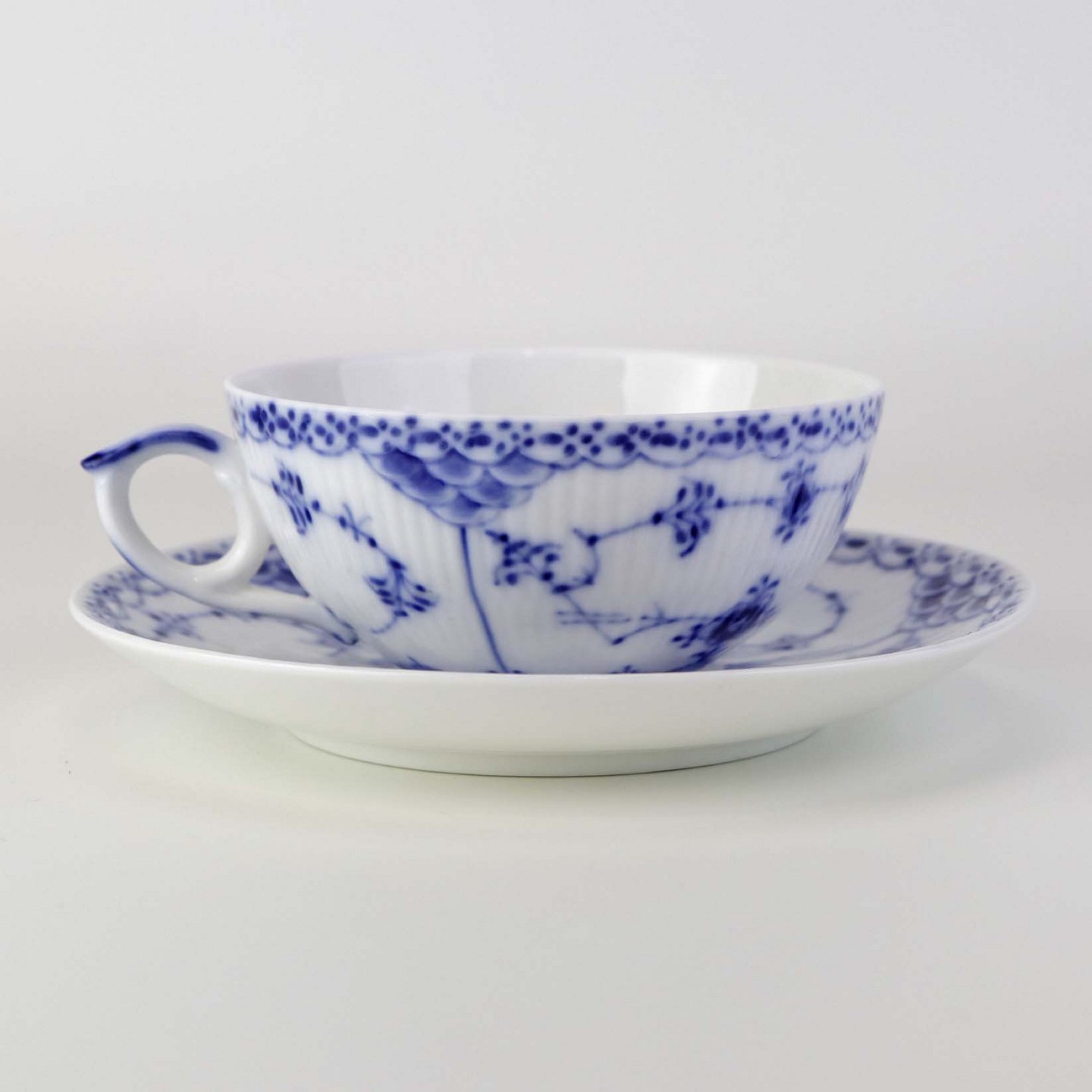 Mellemstørrelsse tekop med underkop i kongeligt porcelæn fra stellet Musselmalet Halvblonde. Nr. 1/525 og 1/525-626-656Design Arnold Krog
