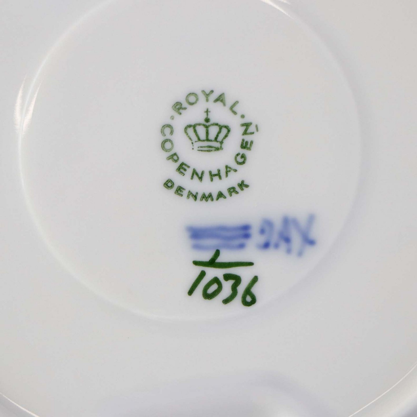 Kaffekop med underkop i kongeligt porcelæn fra stellet Musselmalet Helblonde. Nr. 069 og 1/1036Design Arnold Krog