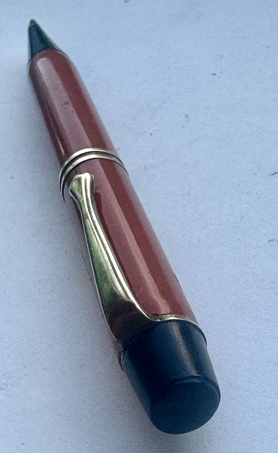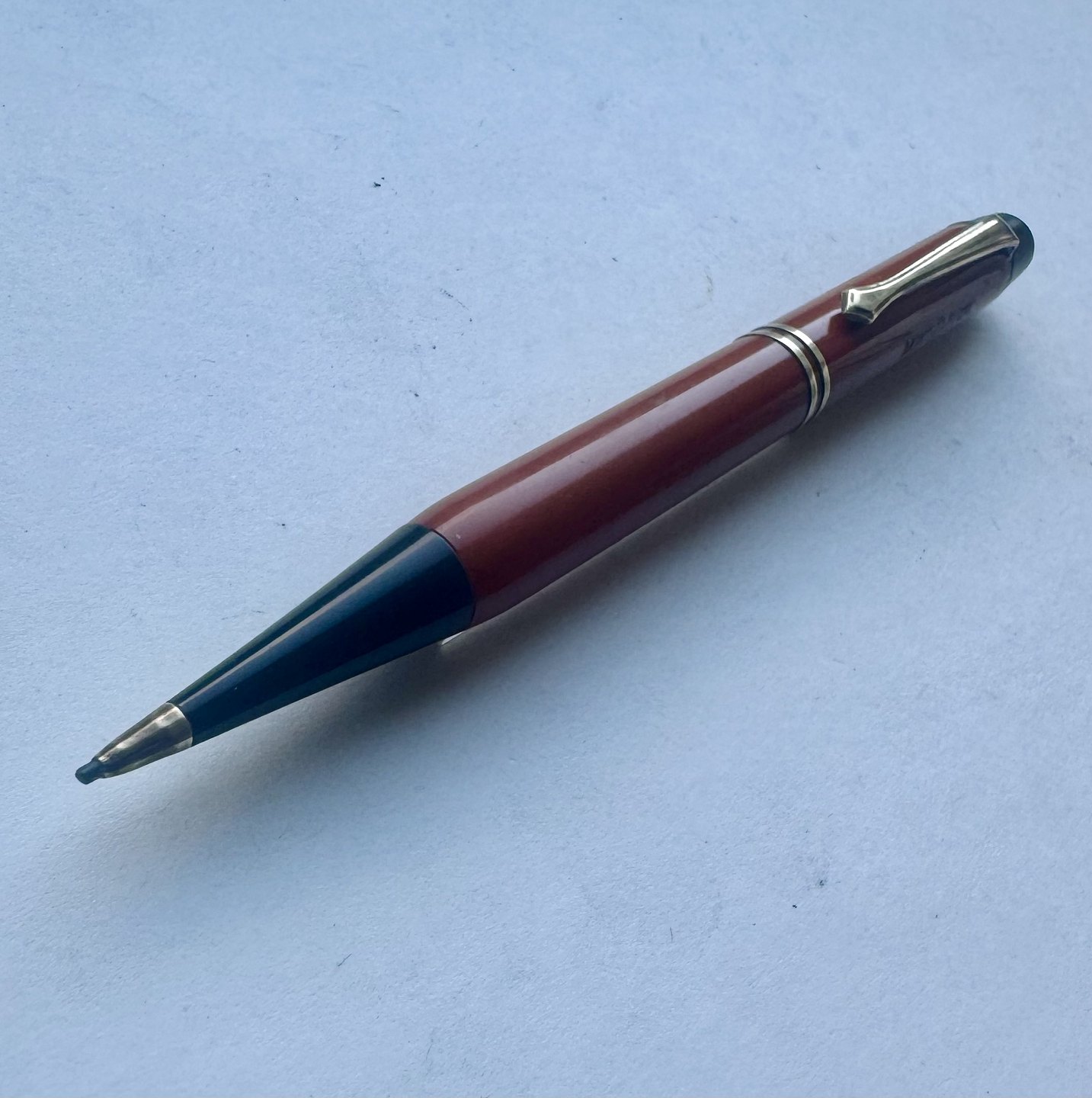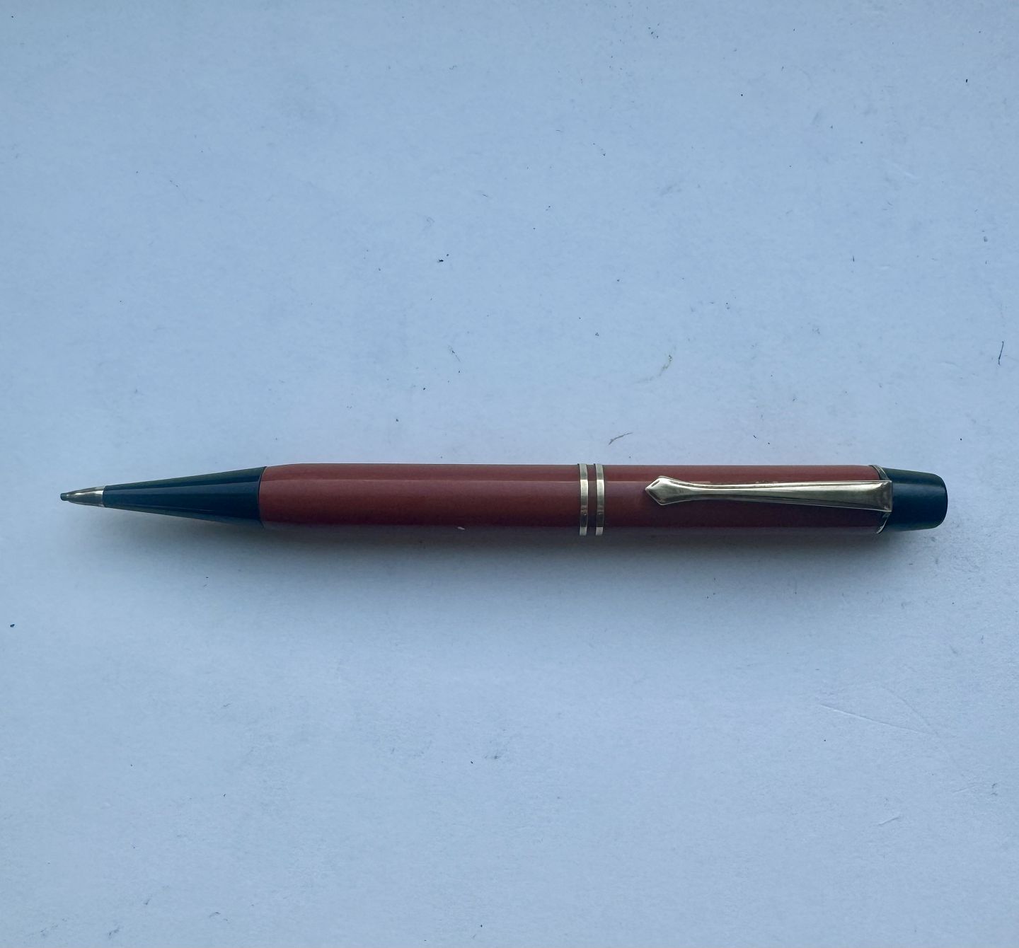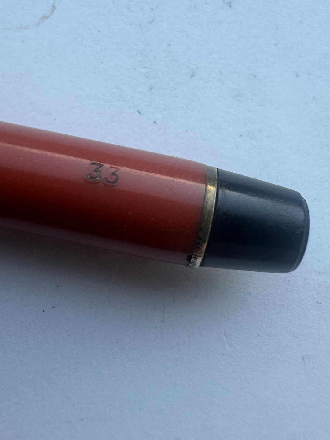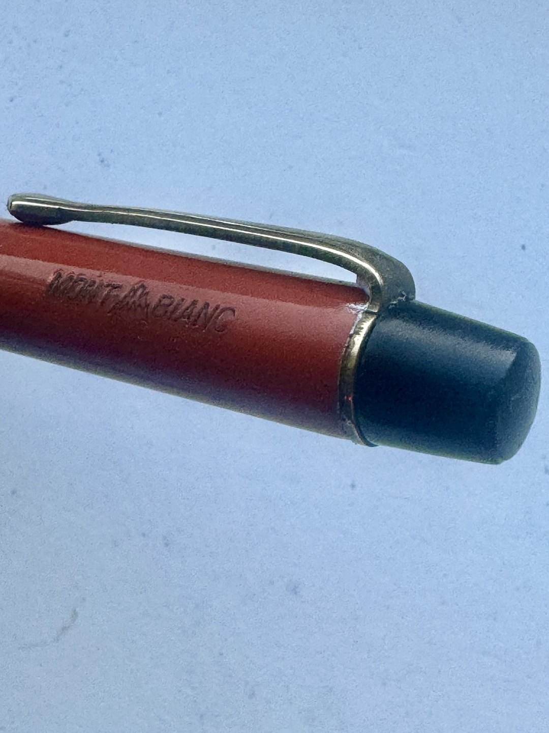 Slank vintage koralrød Montblanc 33 skrueblyant fra omkring 1950. I fin stand uden skader. Klar til at blive brugt. 12,8 cm